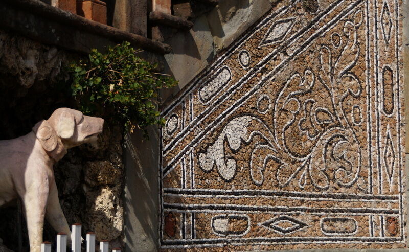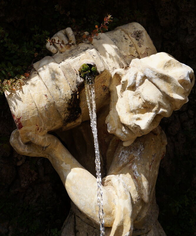 A black swan made a bow for a curtsying welcome and a fountain spread the water in the wind on sounds of harp. I went up, on the slope, among statues and take a break on each terrace to see the perspective. I said "Hello" to the monkeys, I looked with a dog to a mosaic and I heard the story of the man which have to keep a barrel with water on his shoulder for ever.
