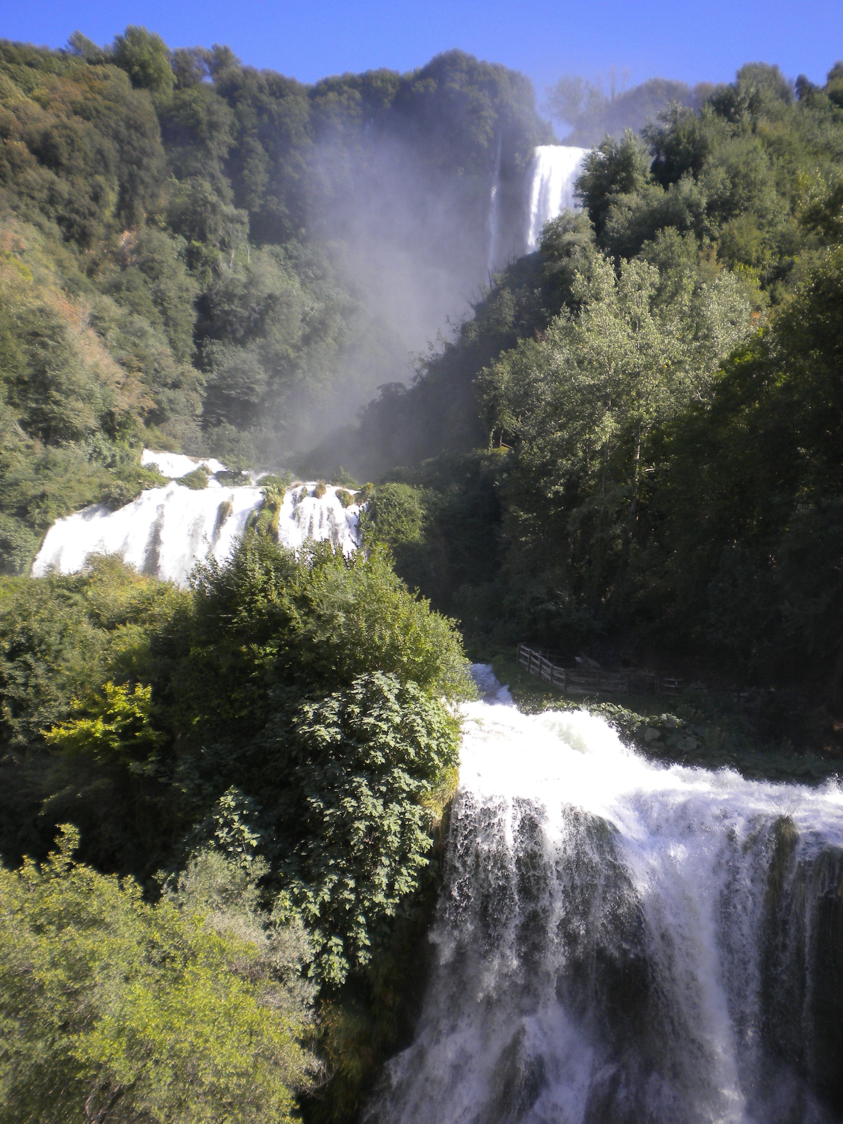 The waterfall Cascata delle Marmore in Umbria, which is 165m, tall. is an awe-inspiring sight. The spray is delightfully cooling on a hot