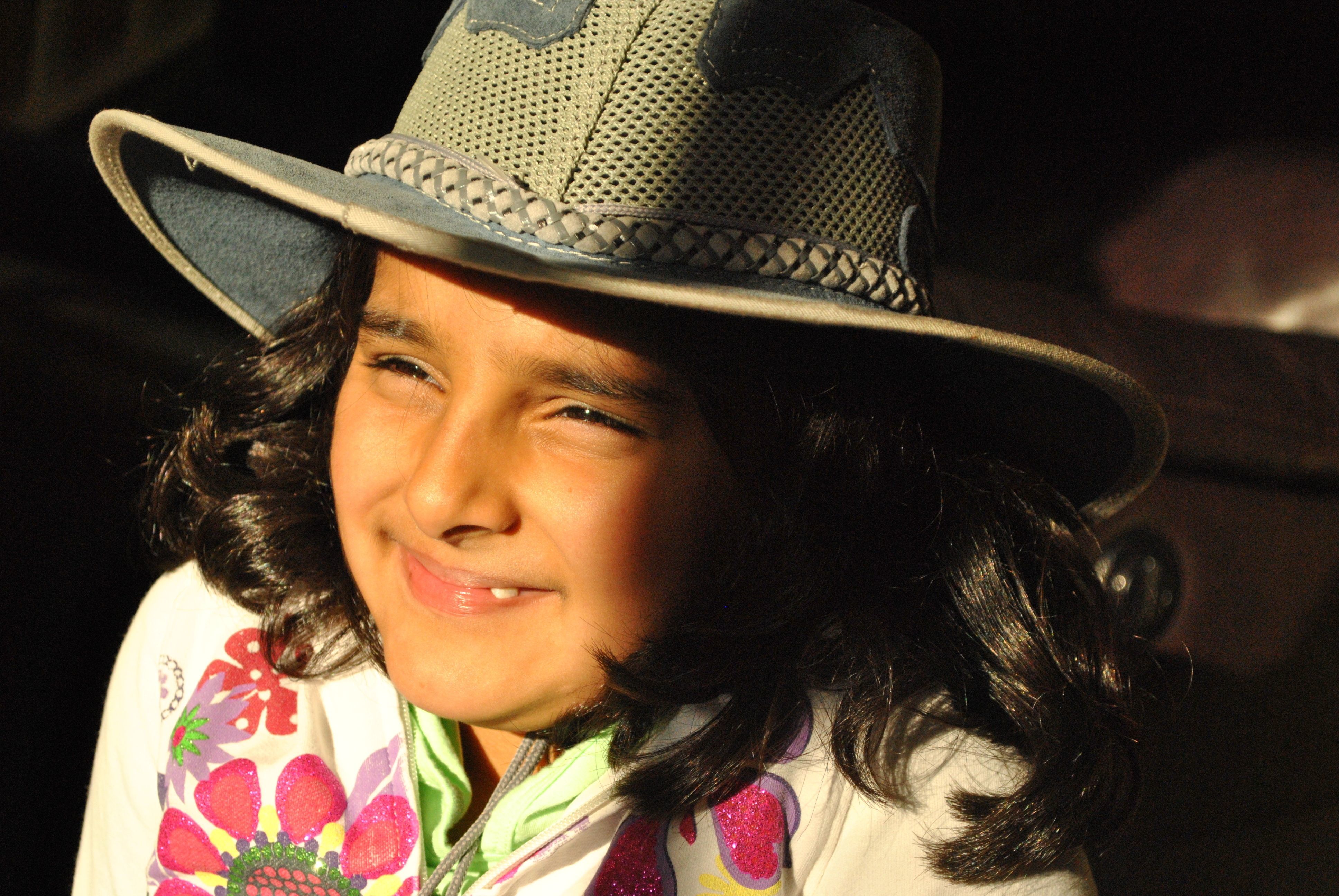 This is a picture of my daughter, enjoying the sun in her favorite cowgirl hat.