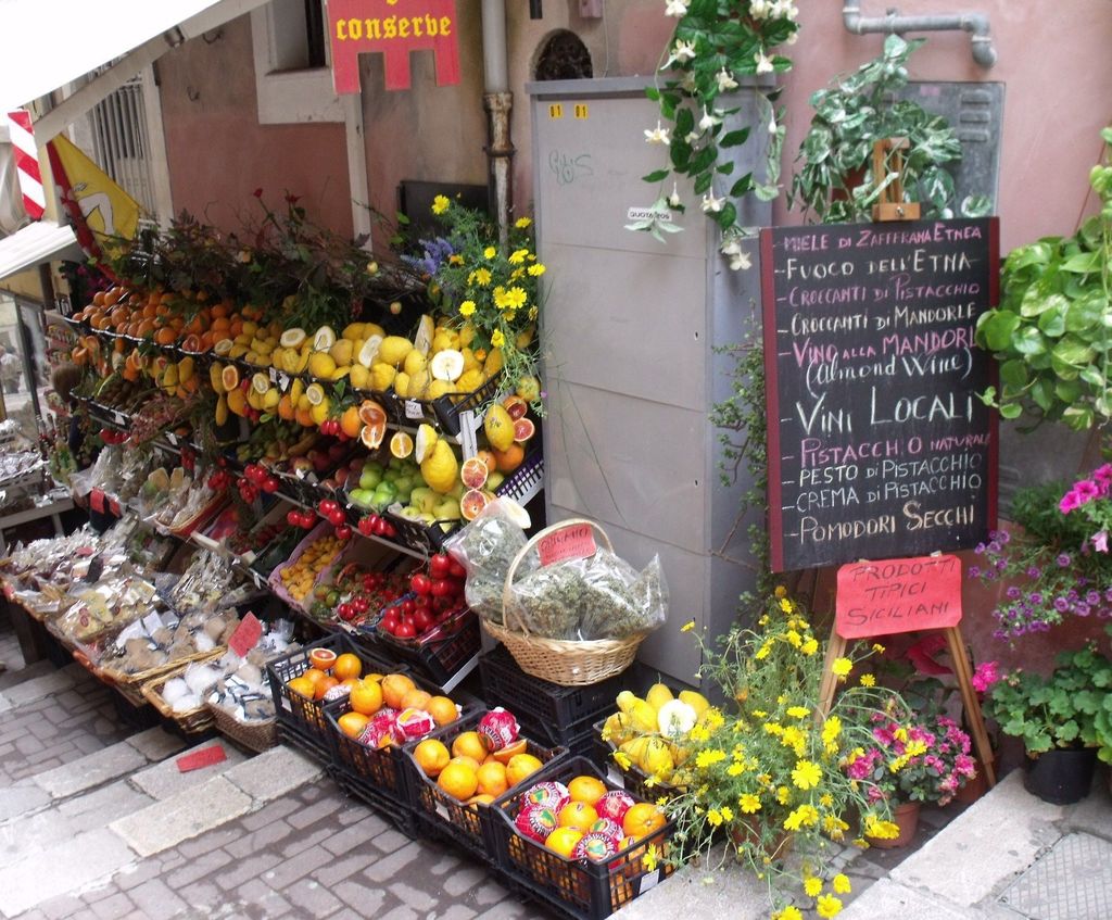 Food shopping along the streets in Taormina. What a wonderful array of colours