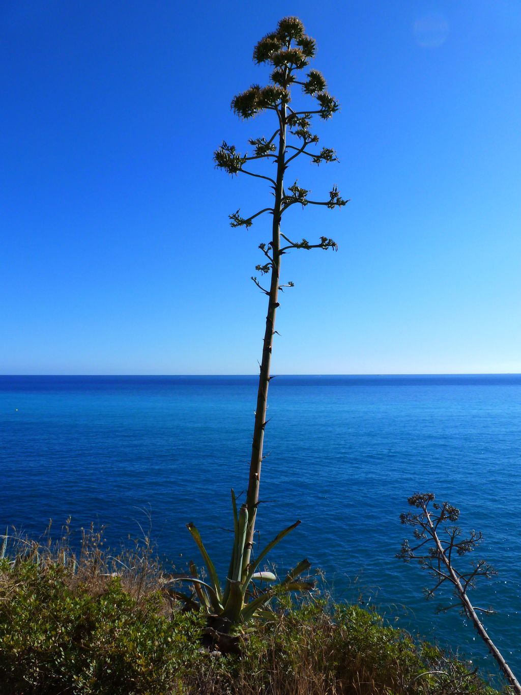 This scene is along a walk to a small sandy beach behind a museum in Ventimiglia, Italy