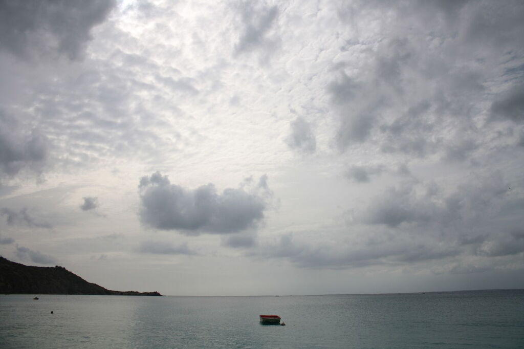 Sur la plage de Baie Orientale, Saint-Martin, Antilles françaises.