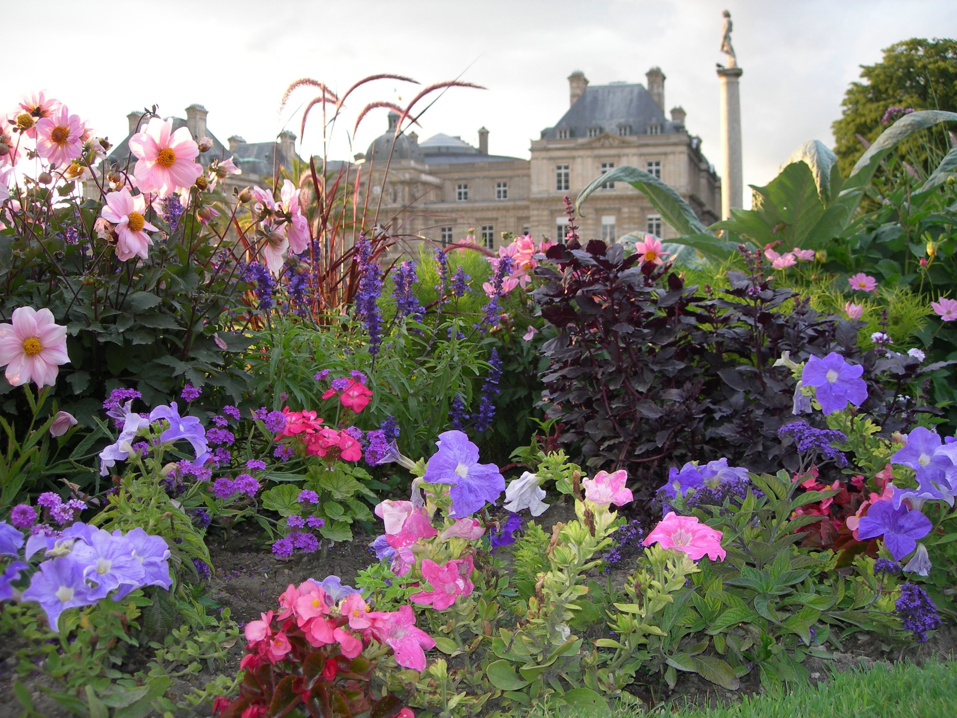 fododel particolare di un giardino fiorito in estate a Parigi.