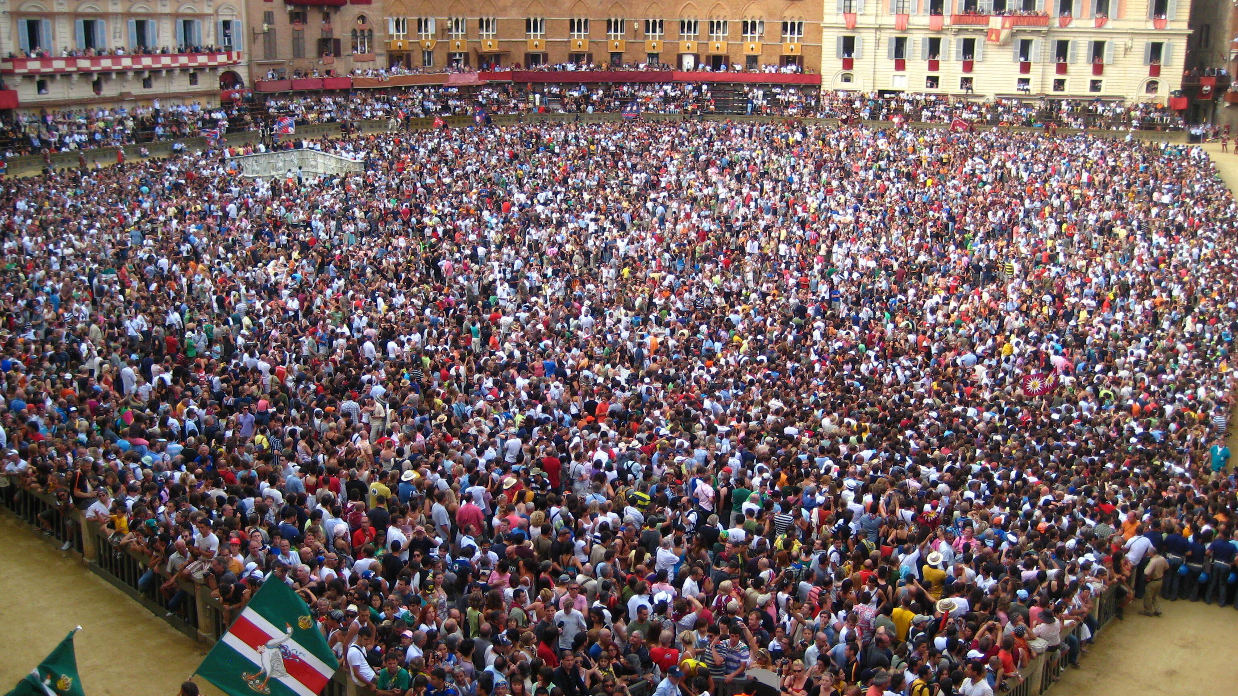 a must on anyones bucket list. Located in beautiful Siena, Tuscany, this bareback race among local neighbourhoods has been running annually for hundreds of years. .We could have joined the 30,000 free standing only 'seats' in the square, but chose to pay for reserved balcony seats in a private home