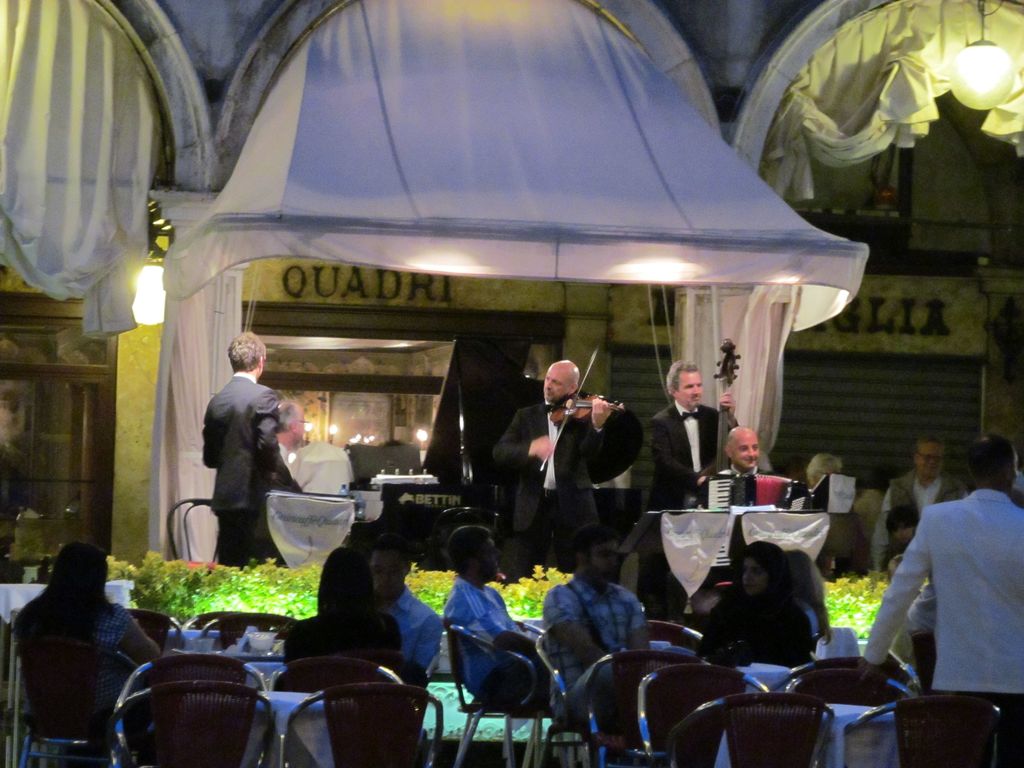 This picture captures the "dueling " orchestras that makes San Marco so magical!