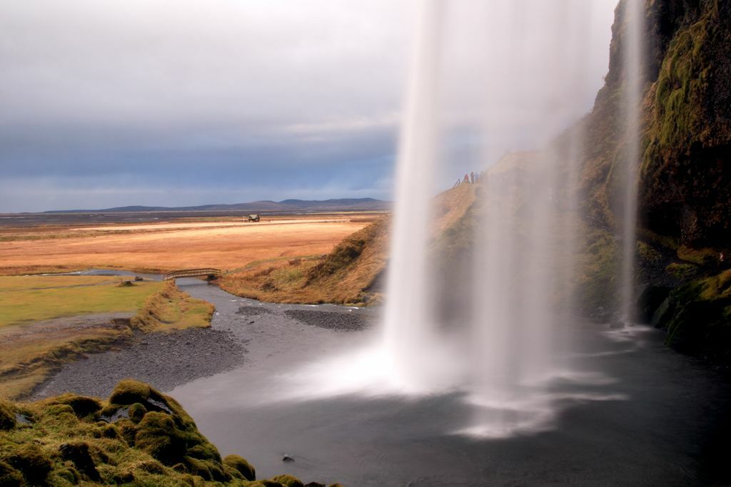 La cascata di Skògafoss è nel sud dell'Islanda. L'immagine è ritratta dall'interno della cascata.