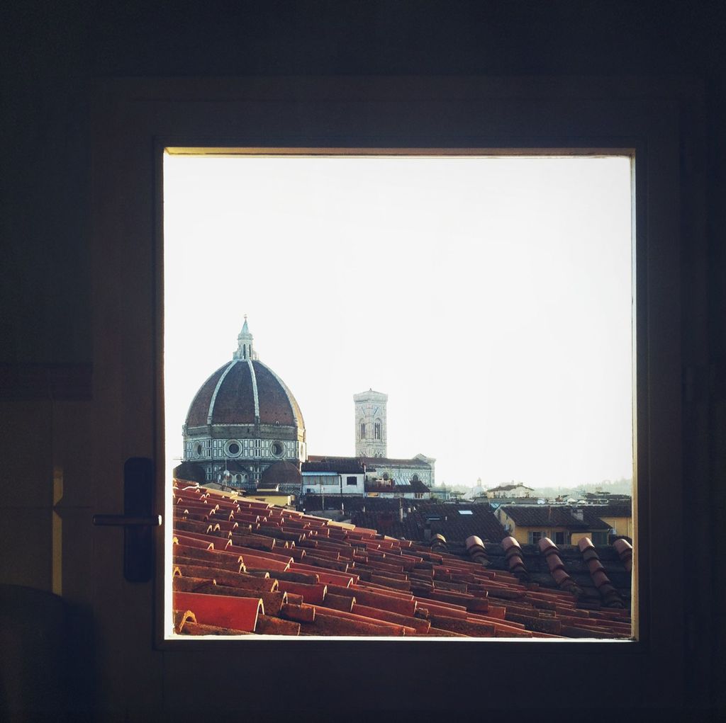 We stayed at the beautiful Loggiato Dei Serviti in Florence and had our room upgraded on arrival. The Bathroom isn't usually somewhere you'd spend a lot of time but the view from this window was breathtaking at the end of a warm day with the sun going down. Taken with an iPhone 4
