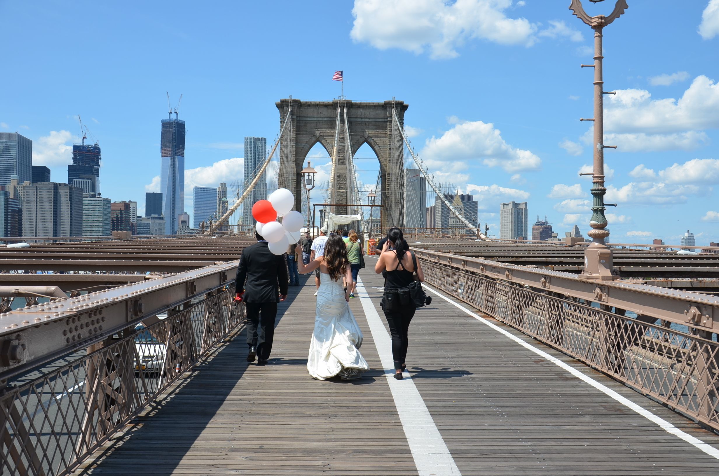 Sur le pont de Brooklin, à New York , ballade amoureuse: ils font leurs derniers pas avant de dire OUI.