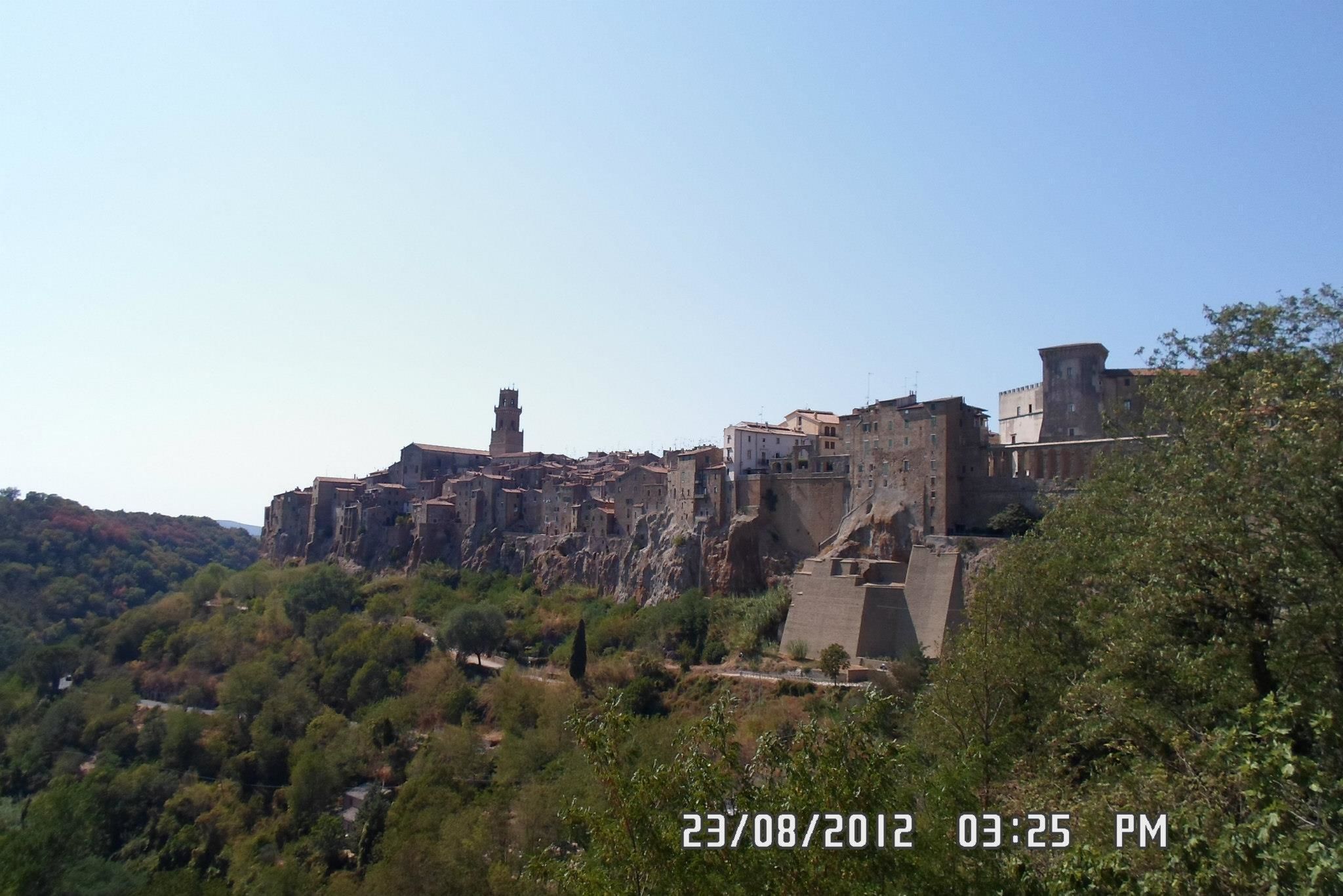 Toscana: Pitigliano. Paesino del '500 arroccato su una collina con strapiombo. Aria fresca ed acqua buona sgorga dalle fontane.