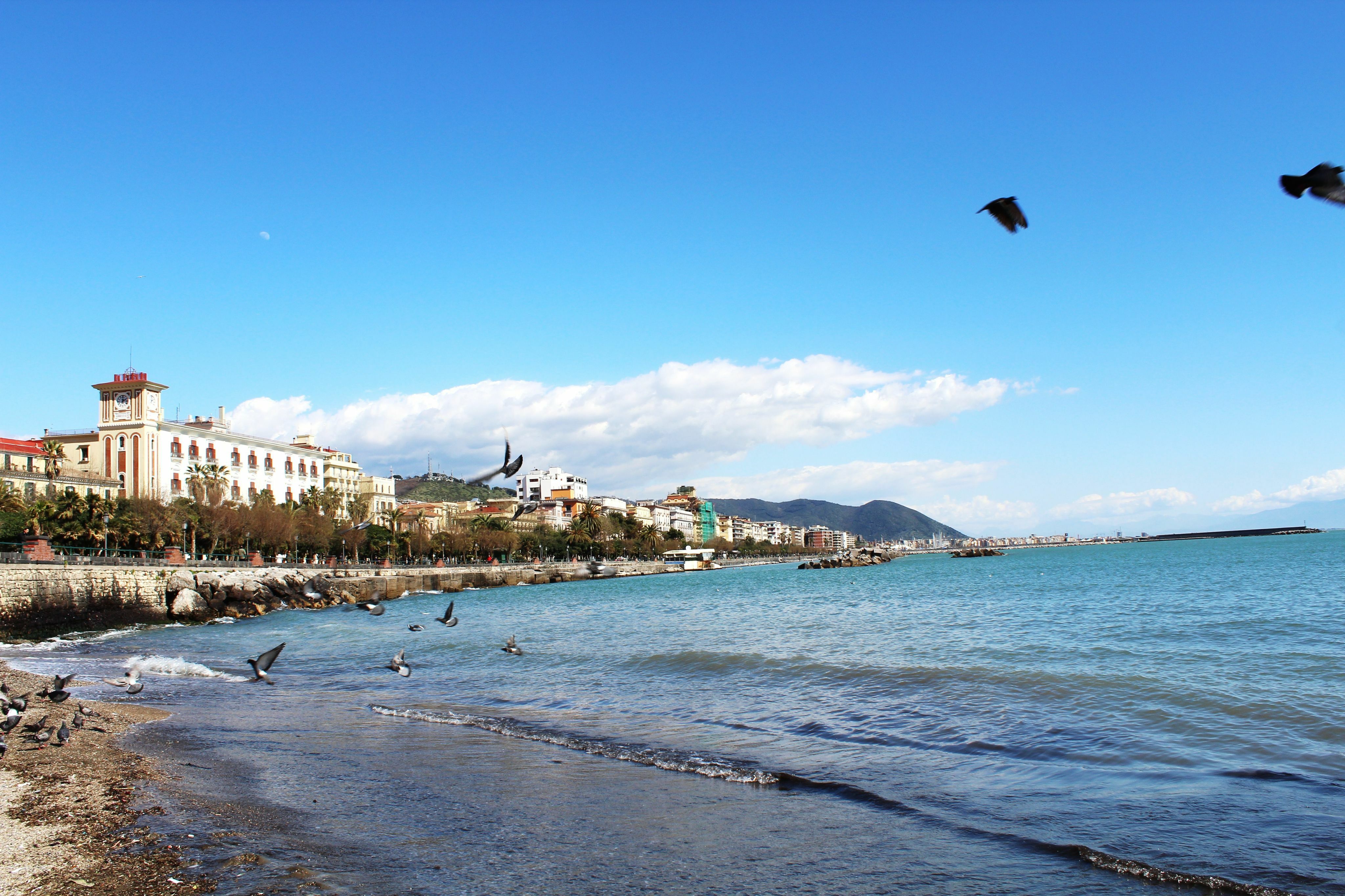 Il sole è il protagonista della fotografia dona una luce particolare al lungomare di Salerno riscaldando gli animi di chi osserva il panorama compiaciuto