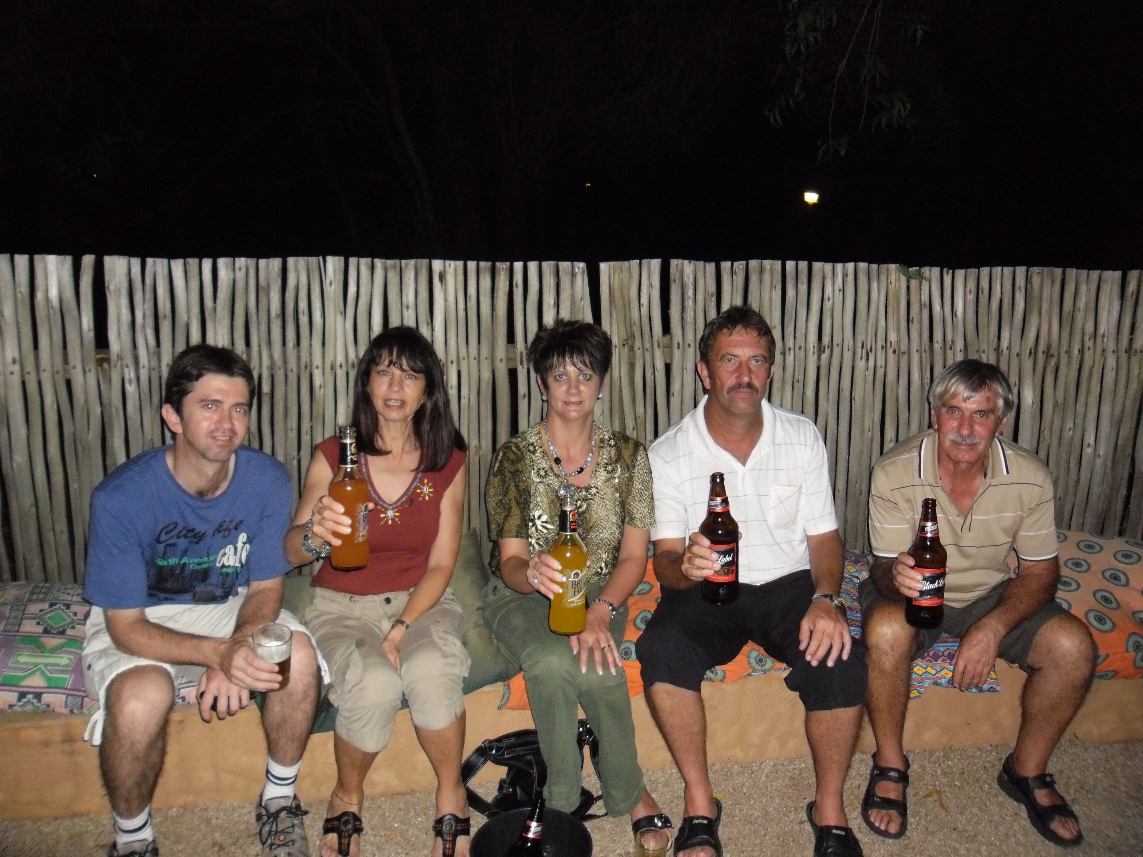 Sun City Multi Cultural Village. The village also offers an legal African Shebeen restaurant and pub. Shebeen means nonlegal(alcoholic beverages were sold without a license) Photo: left to right: Rudi my son, Me(Beatrix), Annelie my Sister in law's daughter & her husband Pierre) George my husband.