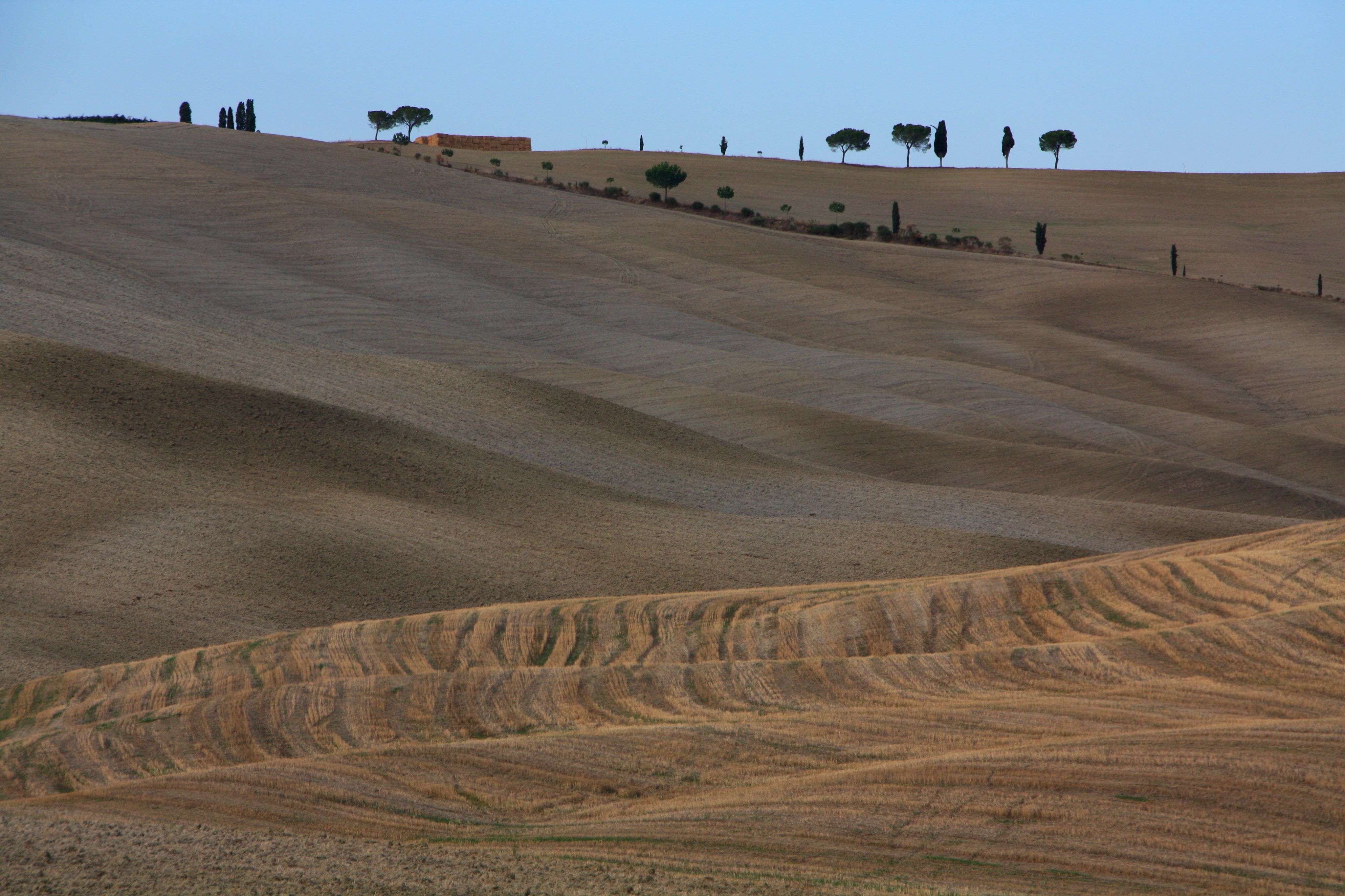 These fields outside of Pienza, Italy were a magnet for our car as we traveled through Tuscany in the Fall of 2012. The sparse trees on the horizon, the undulation of the plowed fields and the way the light played on the different contours was remarkable. Stark but beautiful.