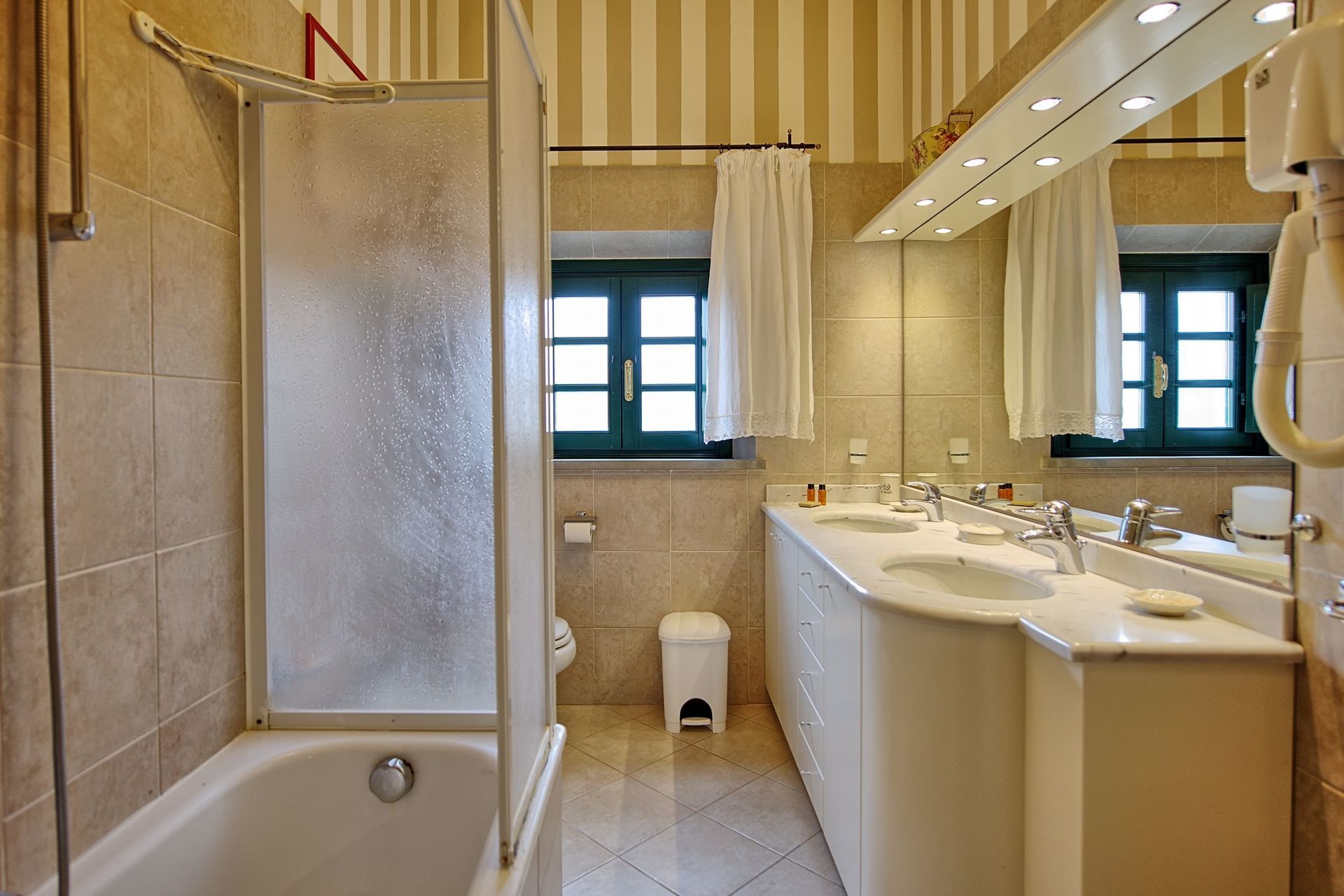 Available to guests huge garden (completely fenced), swimming for shared use among the apartments (16x 8 m – minimum depth 1.2m – maximum depth 1.6m), children’s play area, private and furnished outdoor areas for each apartment, ping-pong table.