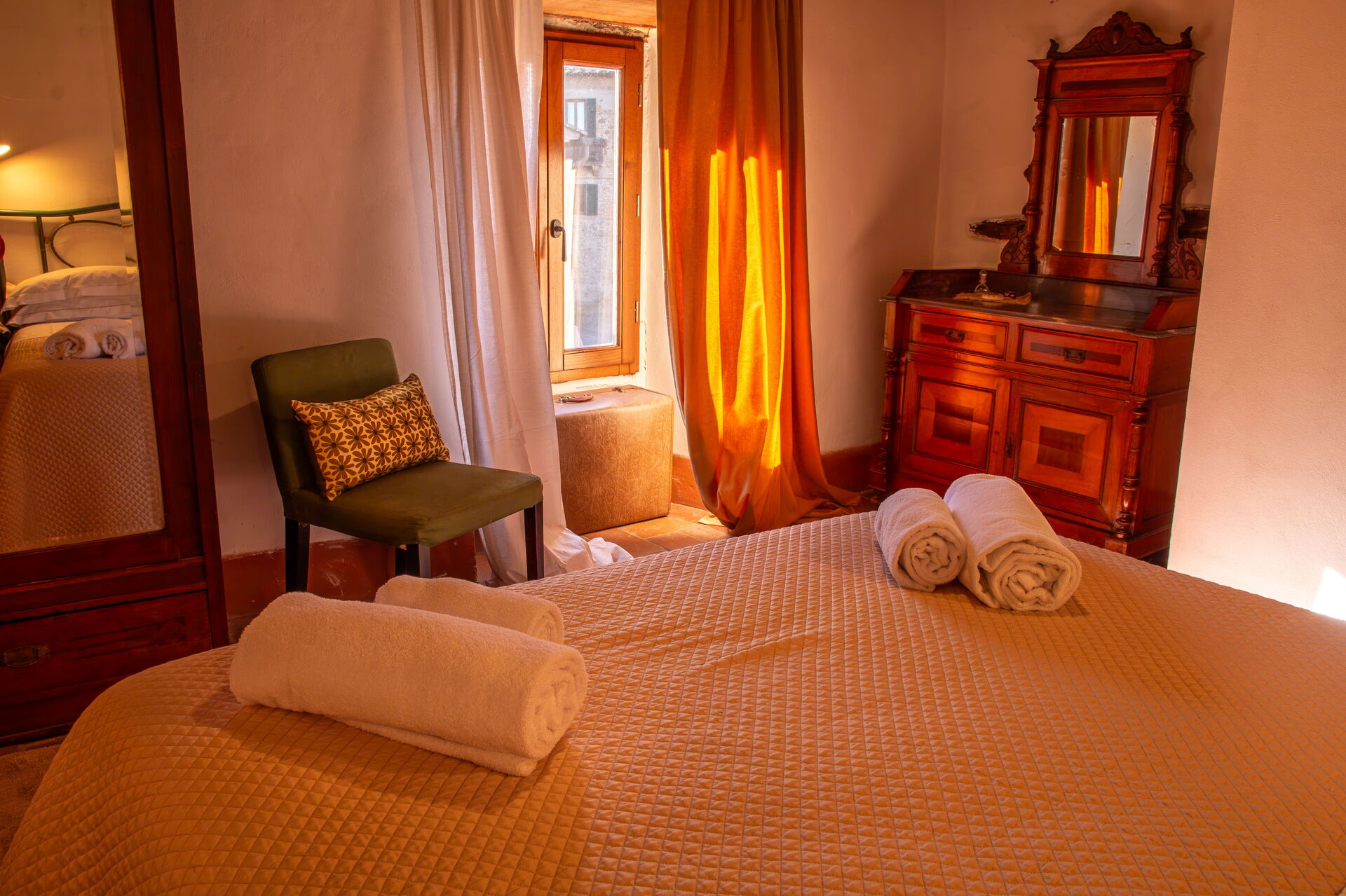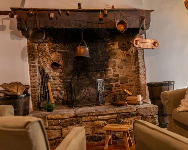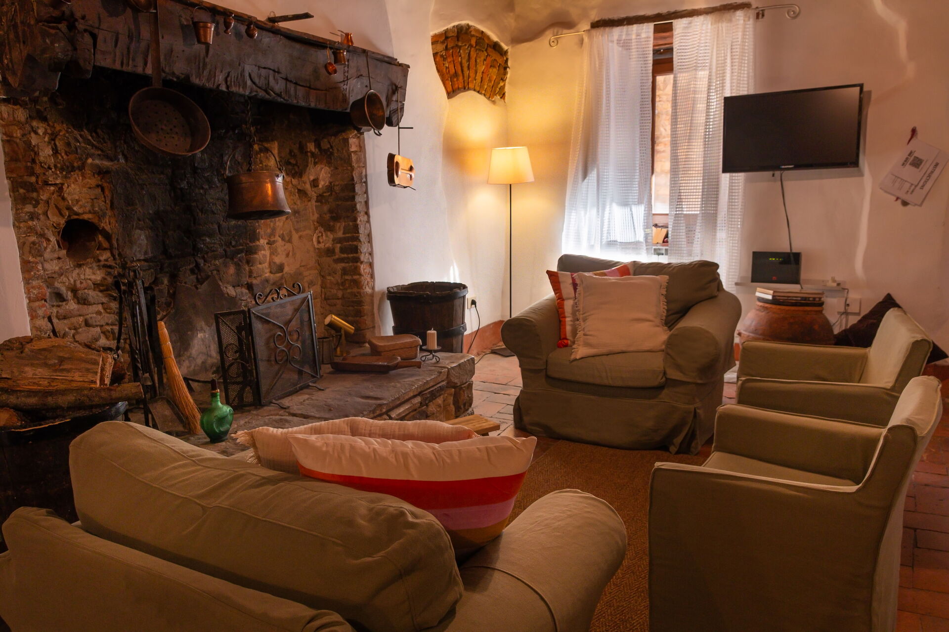 From the entrance your attention will fall on a stunning huge fireplace that used to serve for cooking in the history of this house. A sofa and two comfortable armchairs will make you relax watching TV or just chilling reading your guide/itinerary.