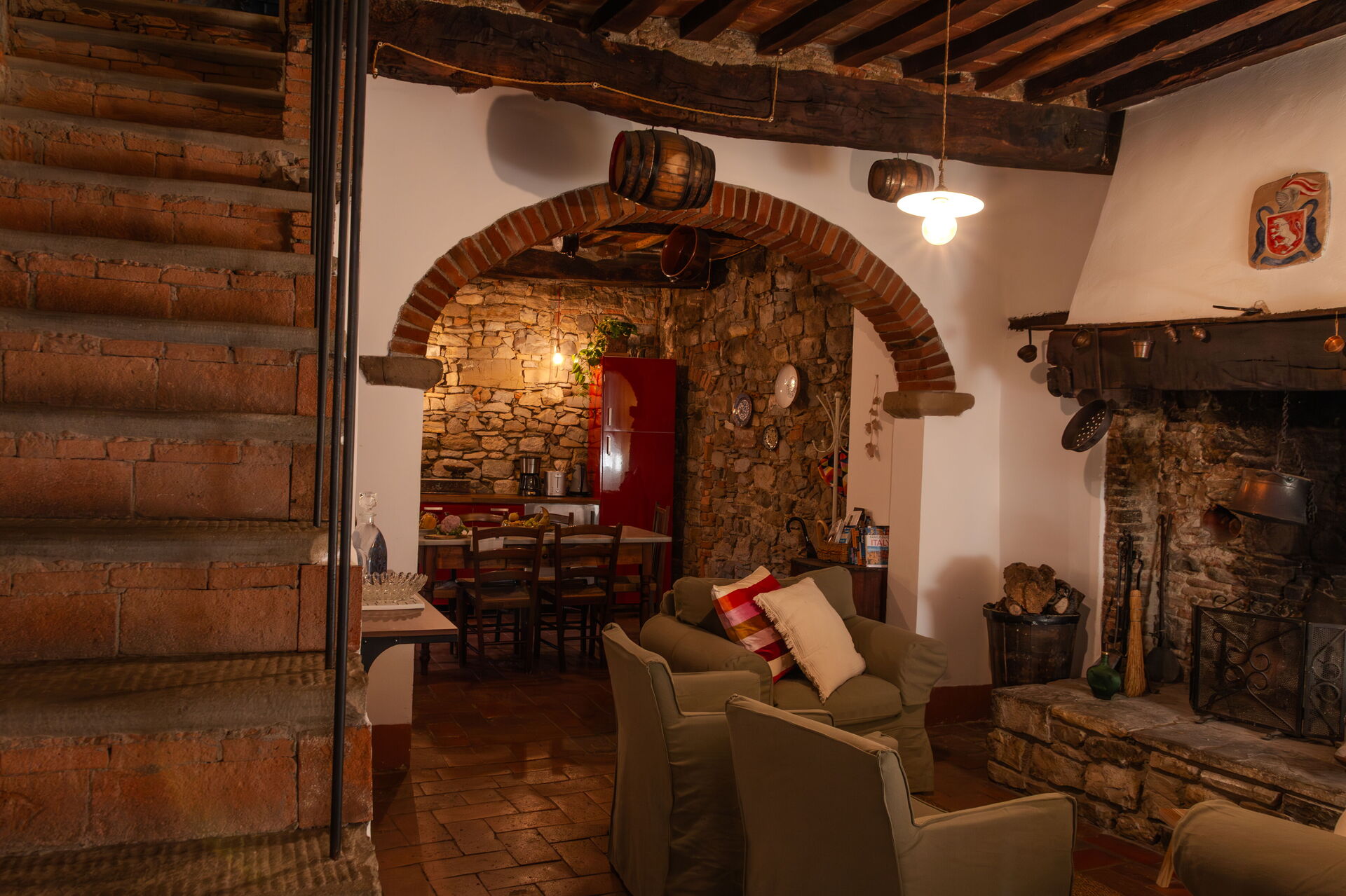 The living room will be your favorite room of the house. Sitting in front of the charming fireplace, or by the desk with local guides and brochures, or on the sofas to watch streaming TV with Netflix and Amazon Video, ... living a real Tuscan house with such simple things.