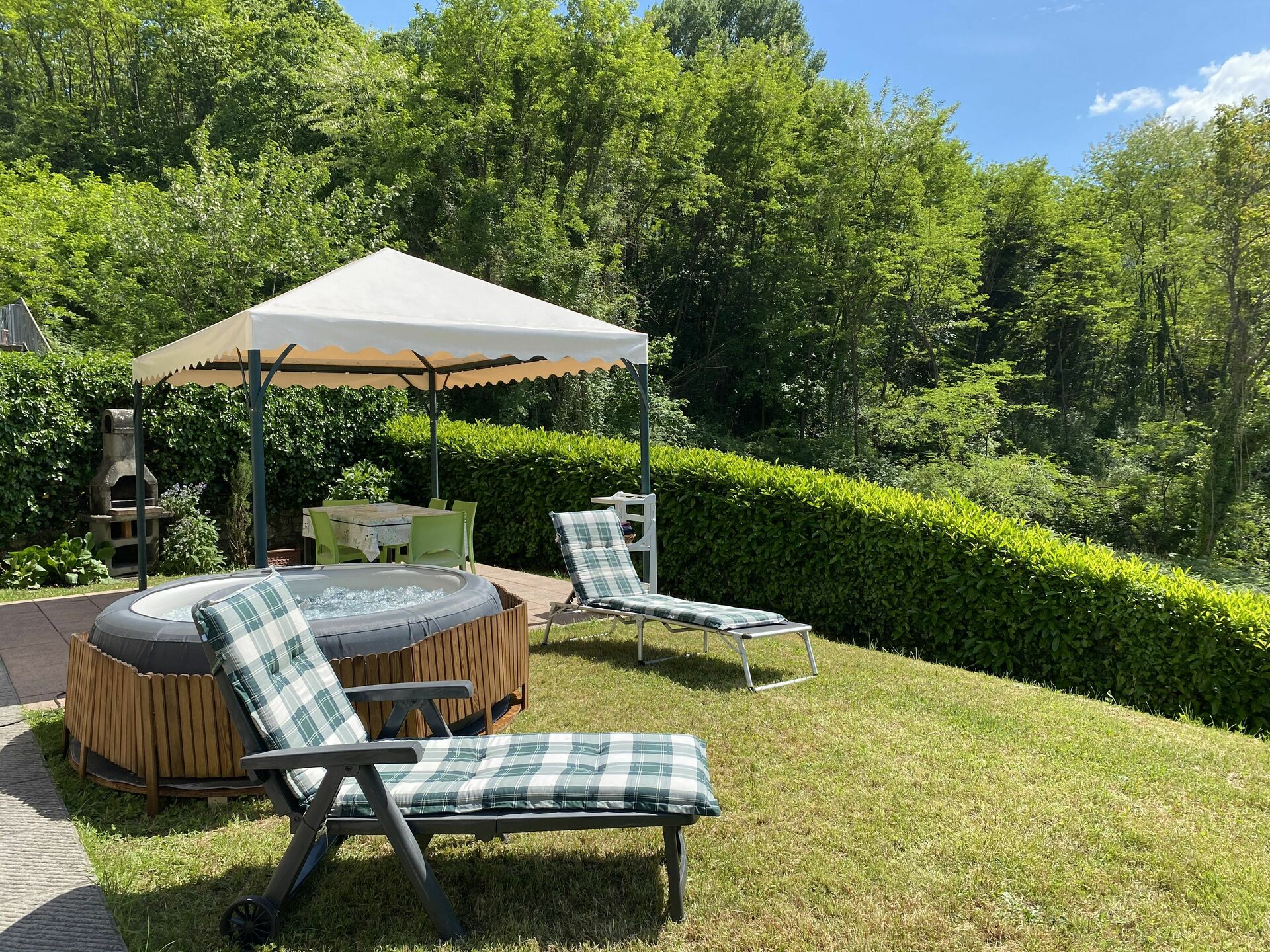 Garden: swimming pool (length: 1.5m, width: 1.5m, depth: 0.7m, outdoor, heated), WIFI internet, barbecue, six dining tables, garden furniture.