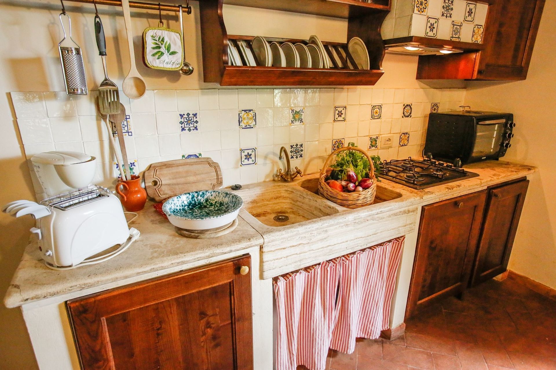 Kitchen + living room: well equipped kitchen, dining table (people: 6), dishwasher, fridge, stove top, oven, toaster, italian coffee machine, american coffee machine, sofa, armchair, fireplace, WIFI internet, satellite tv.
