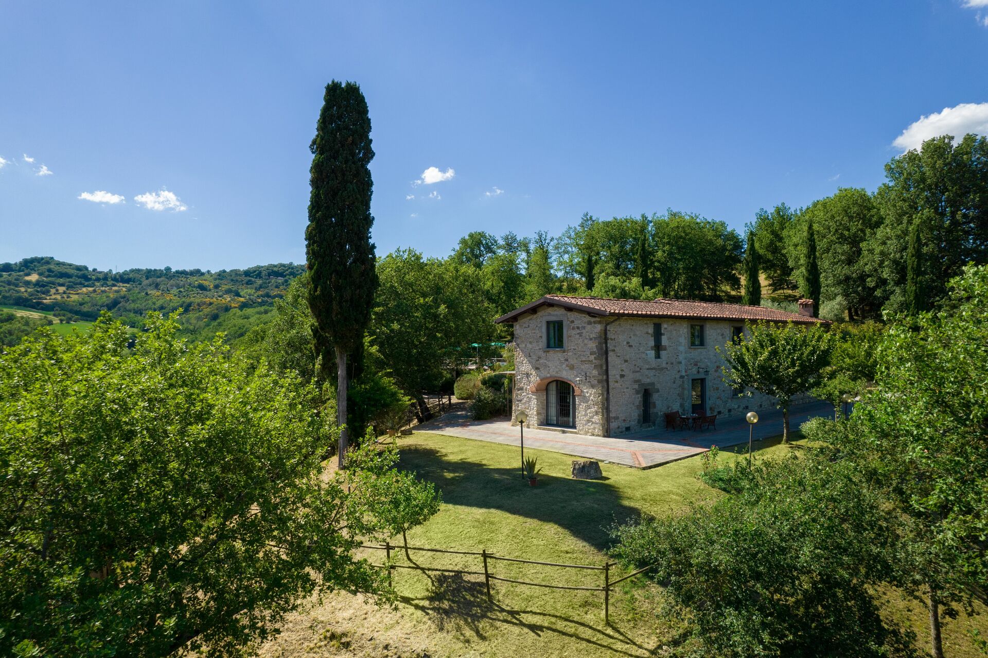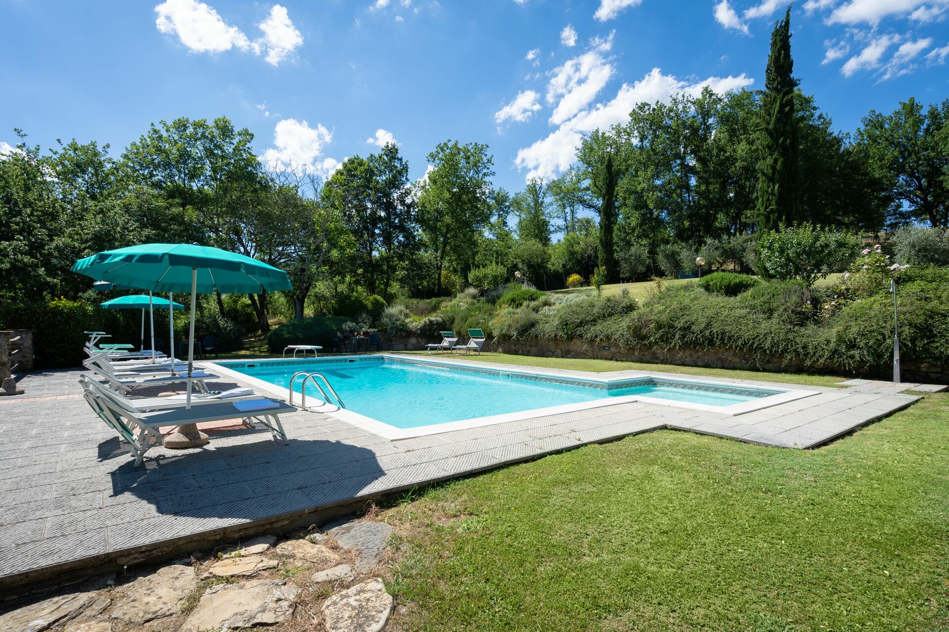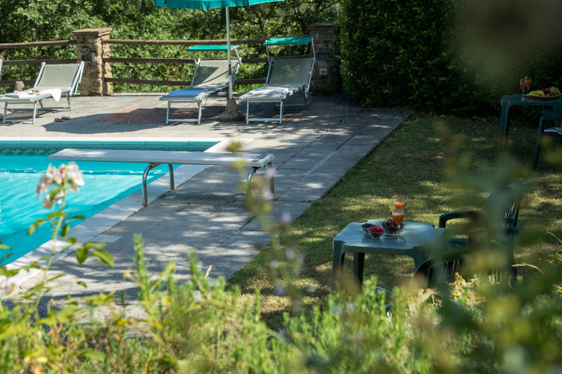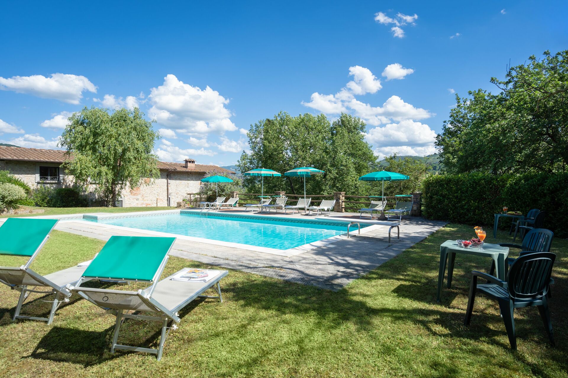 When you arrive at Podere Schignano you’ll find a nice clean well-maintained property with views of the hills perfect for a peaceful holiday in Tuscany. After a hectic day of shopping, spend some time with friends and family poolside enjoying a glass of wine - a perfect way to relax at the end the day. Also available outside are a barbecue grill and patio. If you enjoy cooking for family and friends there is a well-equipped kitchen including coffee machine, microwave, toaster, stove and refrigerator, as well as, plenty of tableware and cutlery for up to 14 people. If you prefer to dine 'al fresco', there is a fully furnished patio where you can enjoy the weather while dining outdoors.