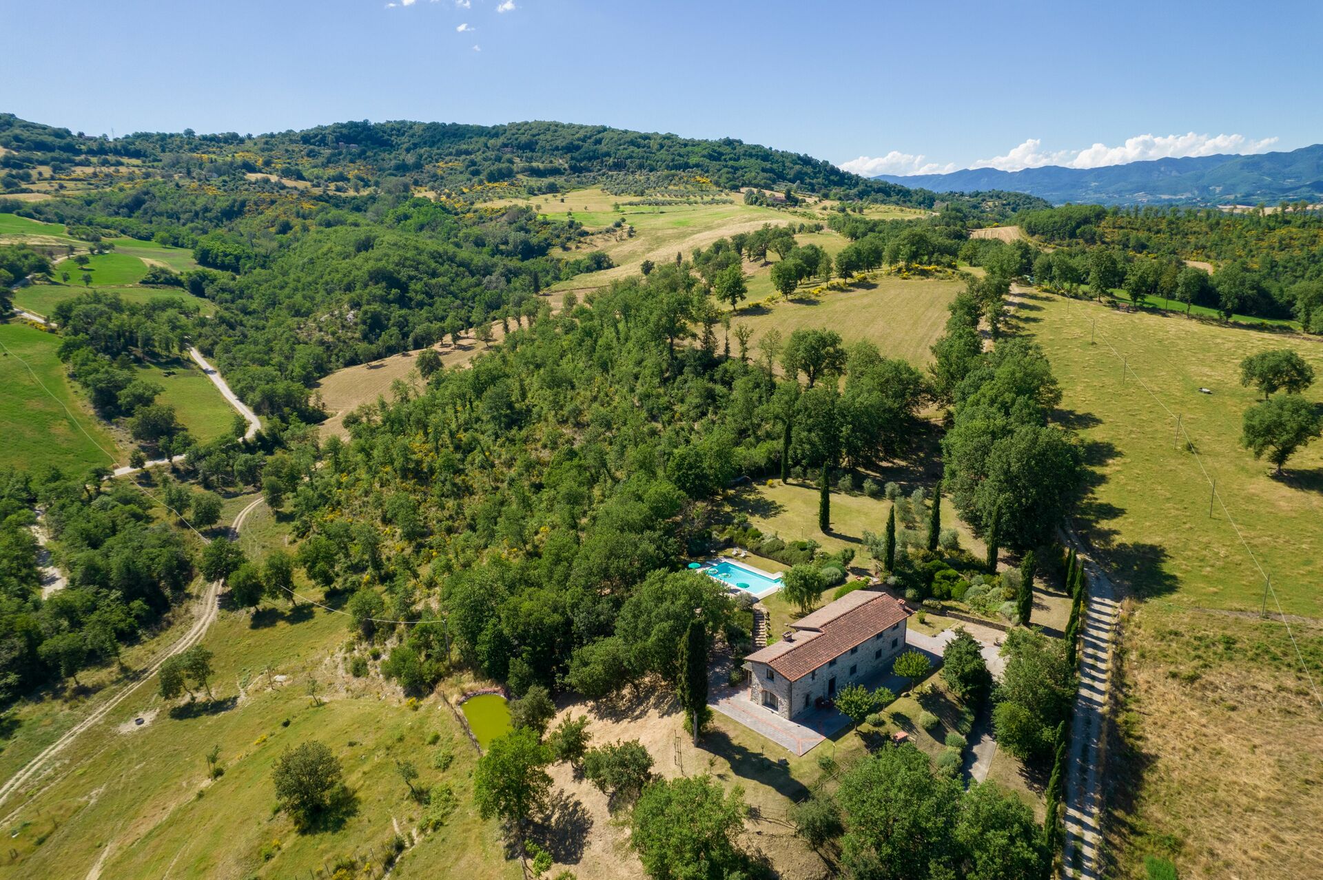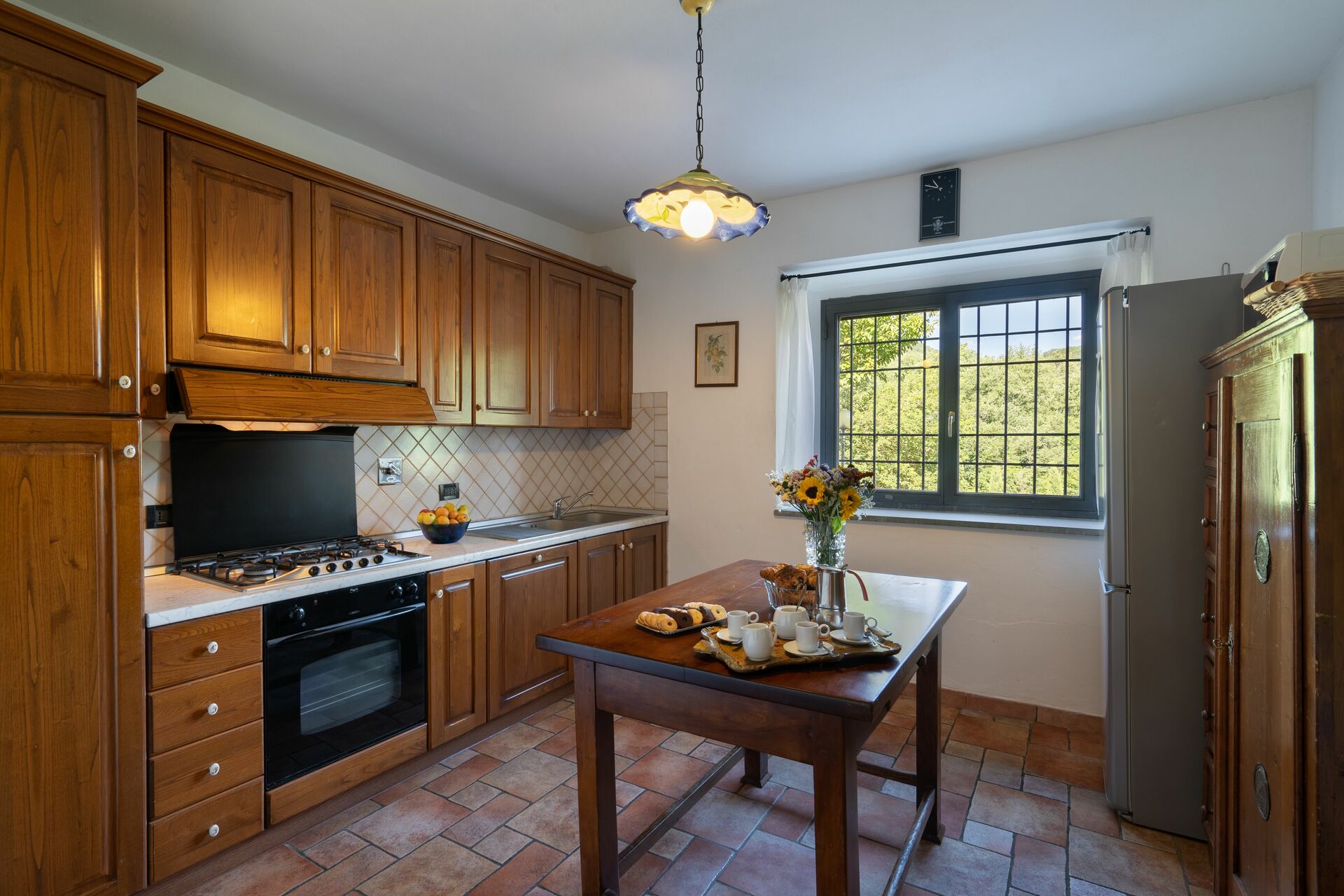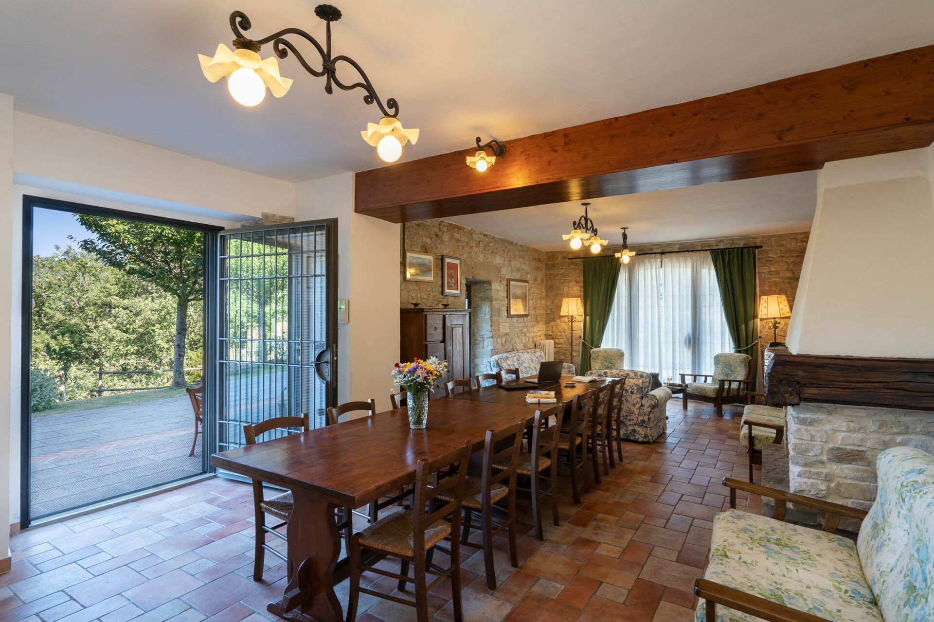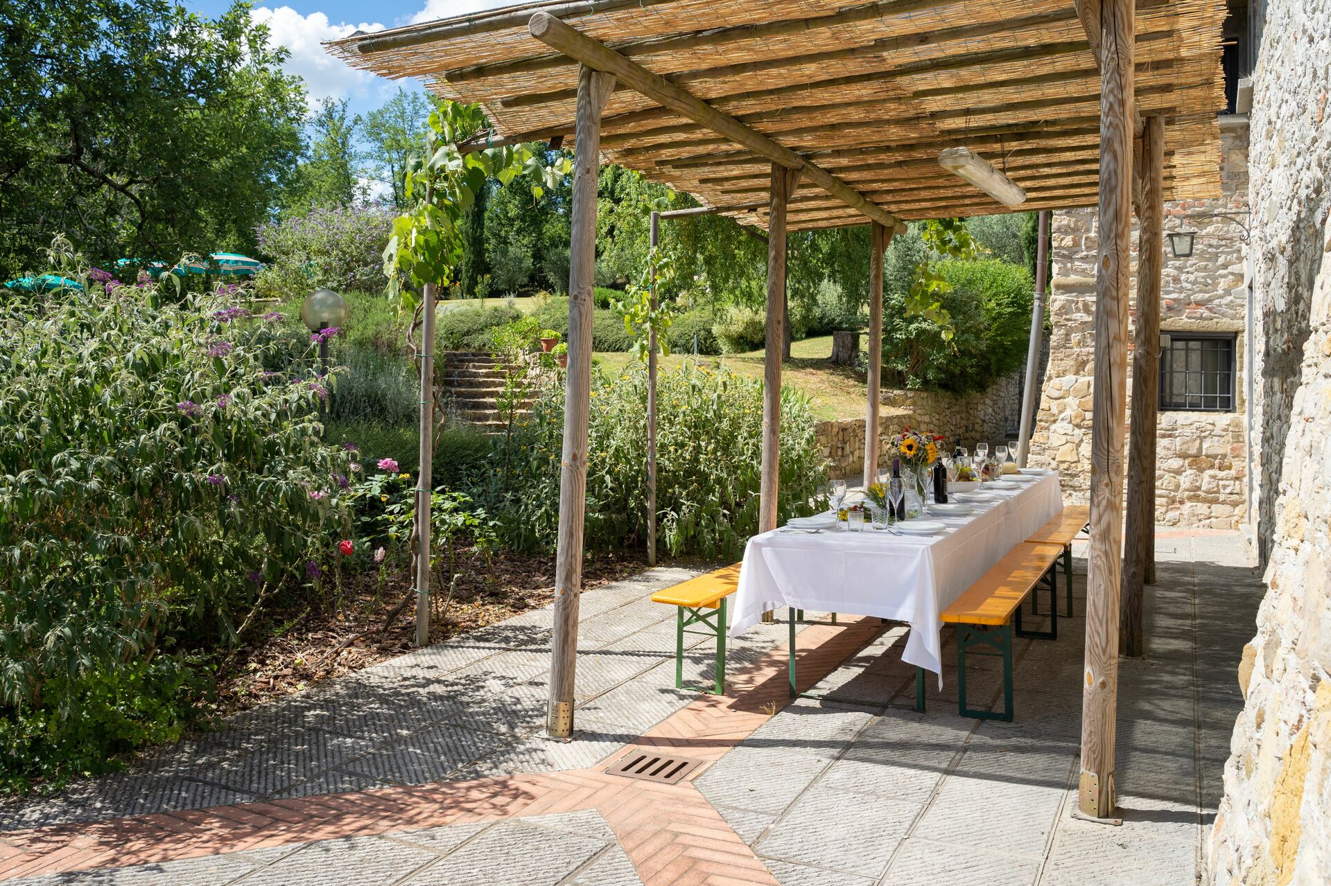 When you arrive at Podere Schignano you’ll find a nice clean well-maintained property with views of the hills perfect for a peaceful holiday in Tuscany. After a hectic day of shopping, spend some time with friends and family poolside enjoying a glass of wine - a perfect way to relax at the end the day. Also available outside are a barbecue grill and patio. If you enjoy cooking for family and friends there is a well-equipped kitchen including coffee machine, microwave, toaster, stove and refrigerator, as well as, plenty of tableware and cutlery for up to 14 people. If you prefer to dine 'al fresco', there is a fully furnished patio where you can enjoy the weather while dining outdoors.