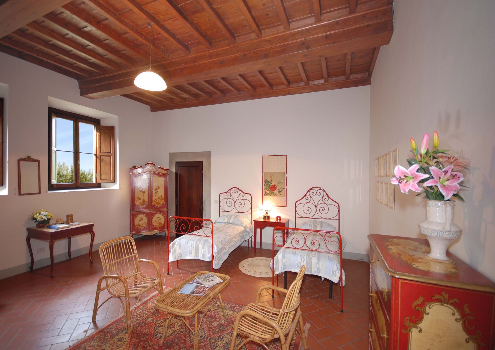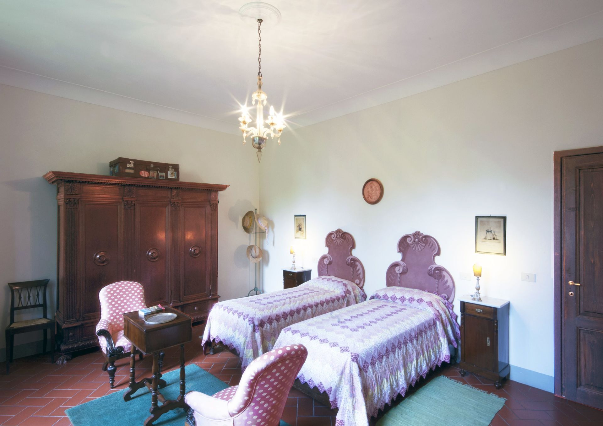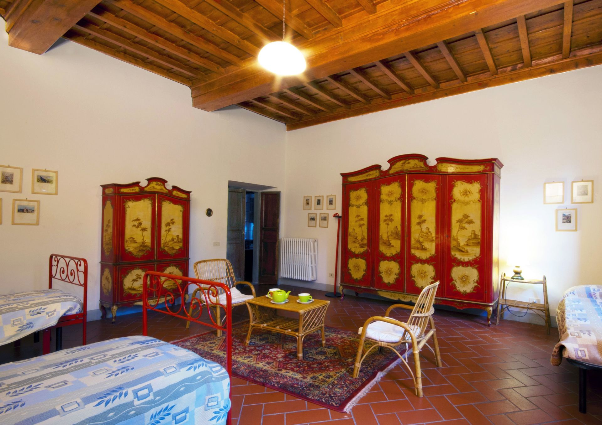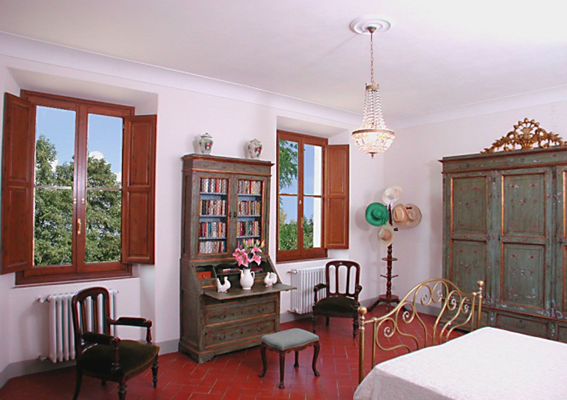 Imposing and elegant villa of the eighteenth century on two levels, well renovated keeping the original style, the spacious rooms with ceilings "caisson" in wood and terracotta floors; the furniture is elegant with many antique items. The property is nestled in the green valley of Mugello, a few kilometers from Florence and only 3km. from "Vicchio", birthplace of Giotto and Fra Angelico. The location of the villa allows you to easily reach the main towns of the region like Florence, Siena, Lucca, Pisa; It is also possible train connections starting from Vicchio station. The structure is surrounded by a 10.000 enclosed park. with old trees, in which is inserted the swimming pool for the exclusive use of guests (12m. x 5m. prof. 120 / 220cm.). The property also has a beautiful panoramic and equipped pergola for outdoor dining and private parking. Wi-Fi free.
