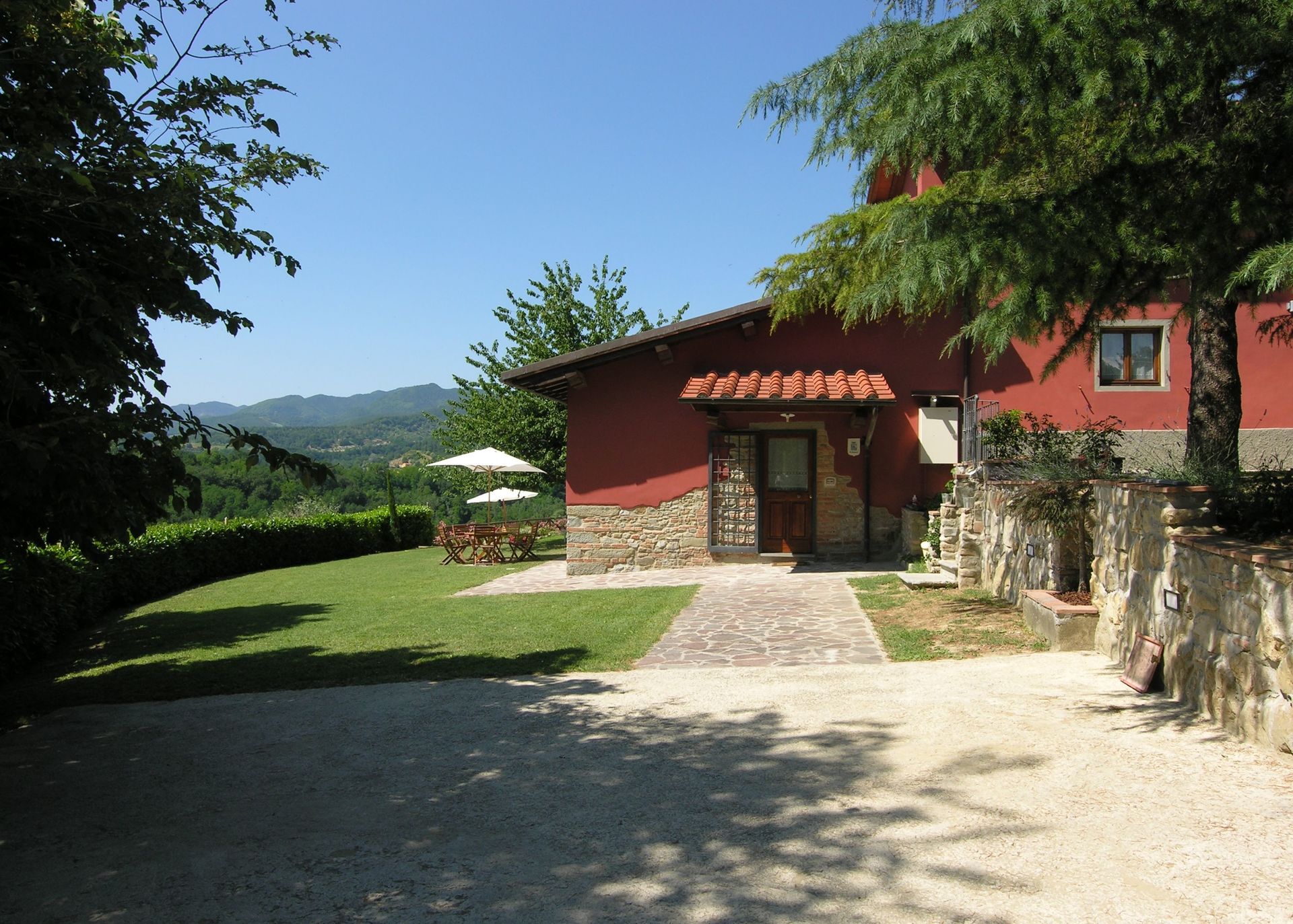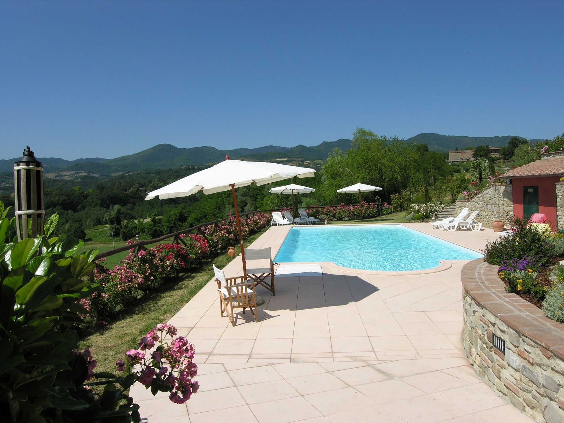 When you arrive you will be greeted by the owner or manager where you’ll find a lovely clean well-maintained property with views of the hills ideal for a splendid vacation in Tuscany. After a busy day of sightseeing, spend some time with friends and family poolside enjoying a glass of wine - a perfect way to unwind at the end the day. Dining with friends and family is a big part of the Tuscan culture. Take advantage of the well-equipped kitchen to prepare meals using local produce while on your vacation. The kitchen includes coffee machine, microwave, toaster, stove and refrigerator, as well as, plenty of tableware and cutlery for up to nine people. Dine 'al fresco' like a real Tuscan, the fully furnished garden is the perfect setting to enjoy food, family and the nice Tuscan weather.
