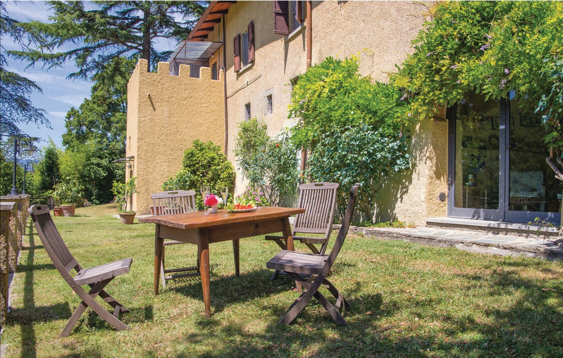 After arriving you will be welcomed by the owner or manager where you’ll find a lovely clean well-maintained property with views of the hills ideal for a peaceful holiday in Tuscany. After a busy day of visiting museums, spend some time with friends and family poolside enjoying a glass of wine - a perfect way to unwind at the end the day. Dining with friends and family is a big part of the Tuscan culture. Take advantage of the kitchen to prepare meals using local produce while on your holiday. The kitchen includes coffee machine, microwave, stove and refrigerator, as well as, plenty of tableware and cutlery for up to 13 people. Dine 'al fresco' like a real Tuscan, the fully furnished garden is the perfect setting to enjoy food, family and the beautiful Tuscan weather.