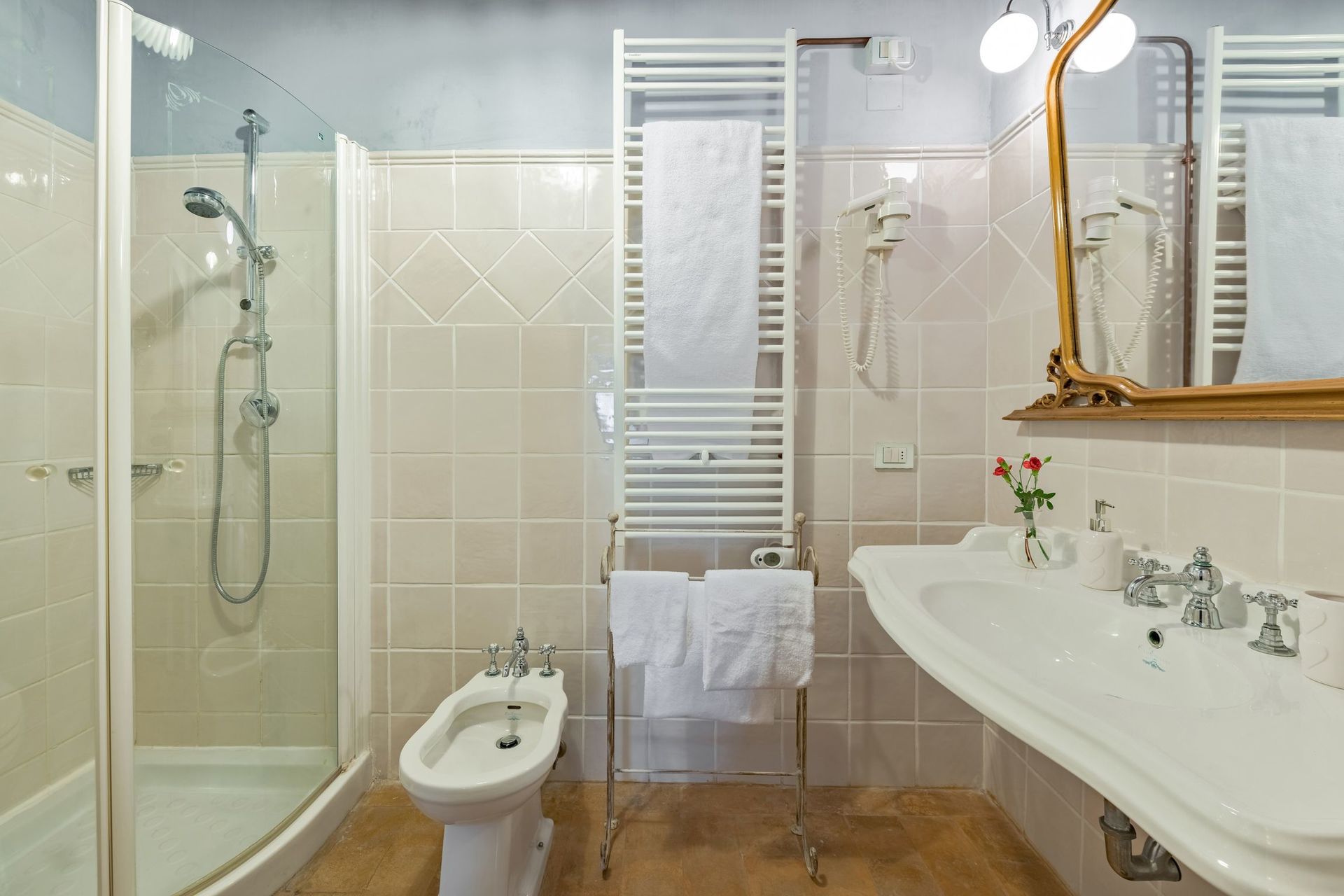 Bedroom + Ensuite Bathroom 7 (57 m2): double bed (length: 1.9m, width: 1.6m), WIFI internet, internet, air conditioning, satellite tv, television, armchair, basin, toilet, bidet, bathtub, hairdryer.