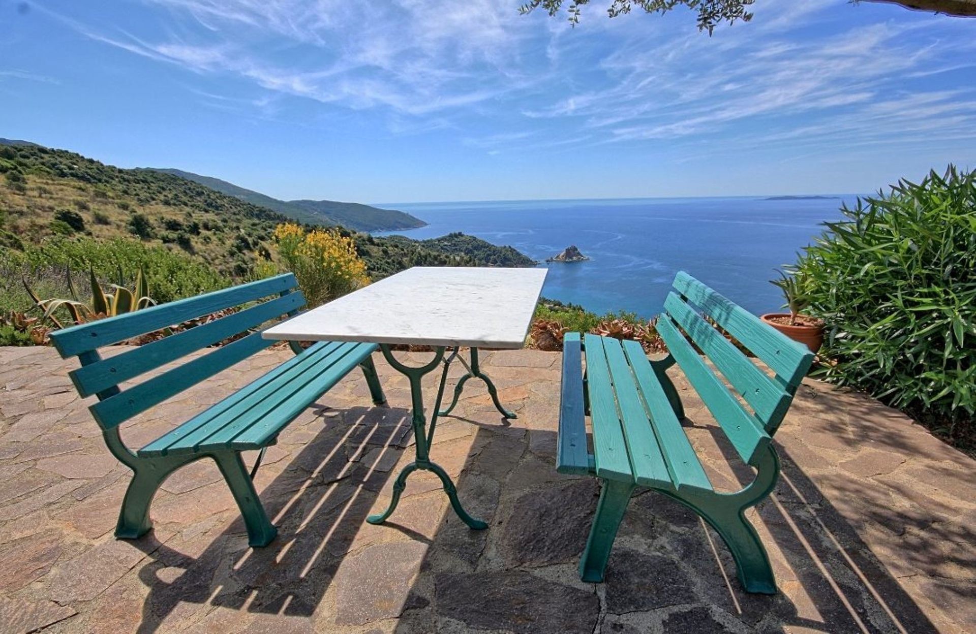 The villa is about 200 m above sea level. The rocky/pebble coves and the sandy ones are 3.5 km away and can be easily reached by car. It is also possible to get there on foot, and the descent does not pose any problems, but the climb back up is a bit more strenuous.