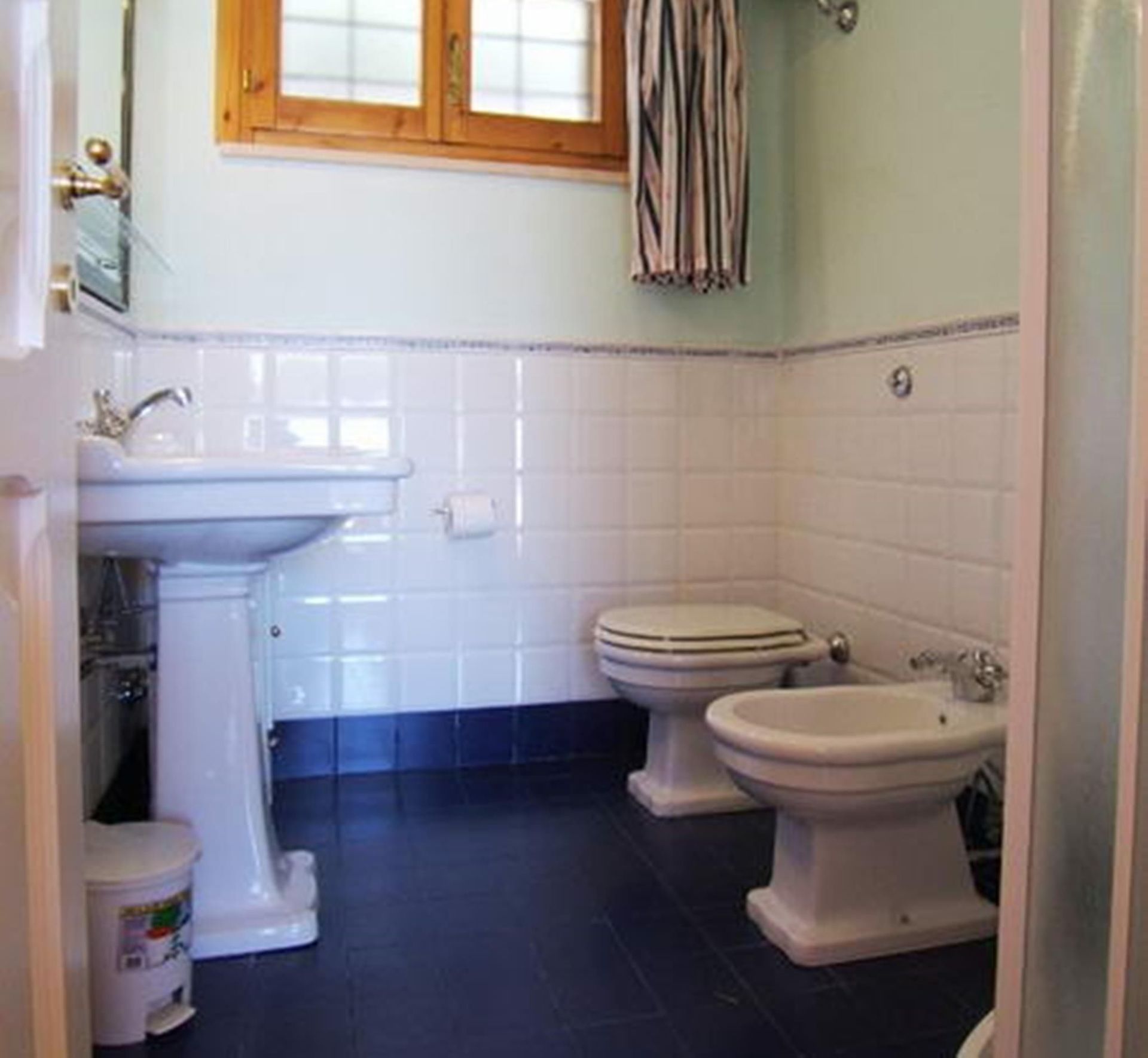 Bathroom: basin, toilet, bidet, shower.