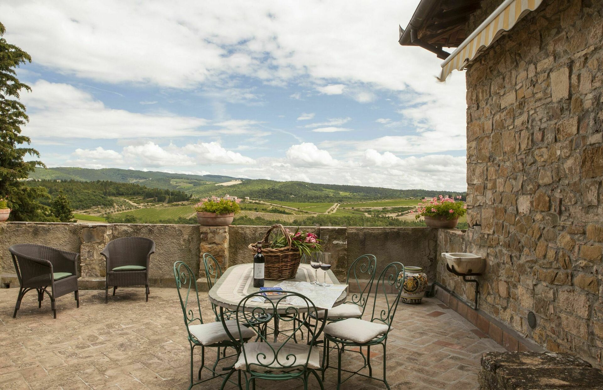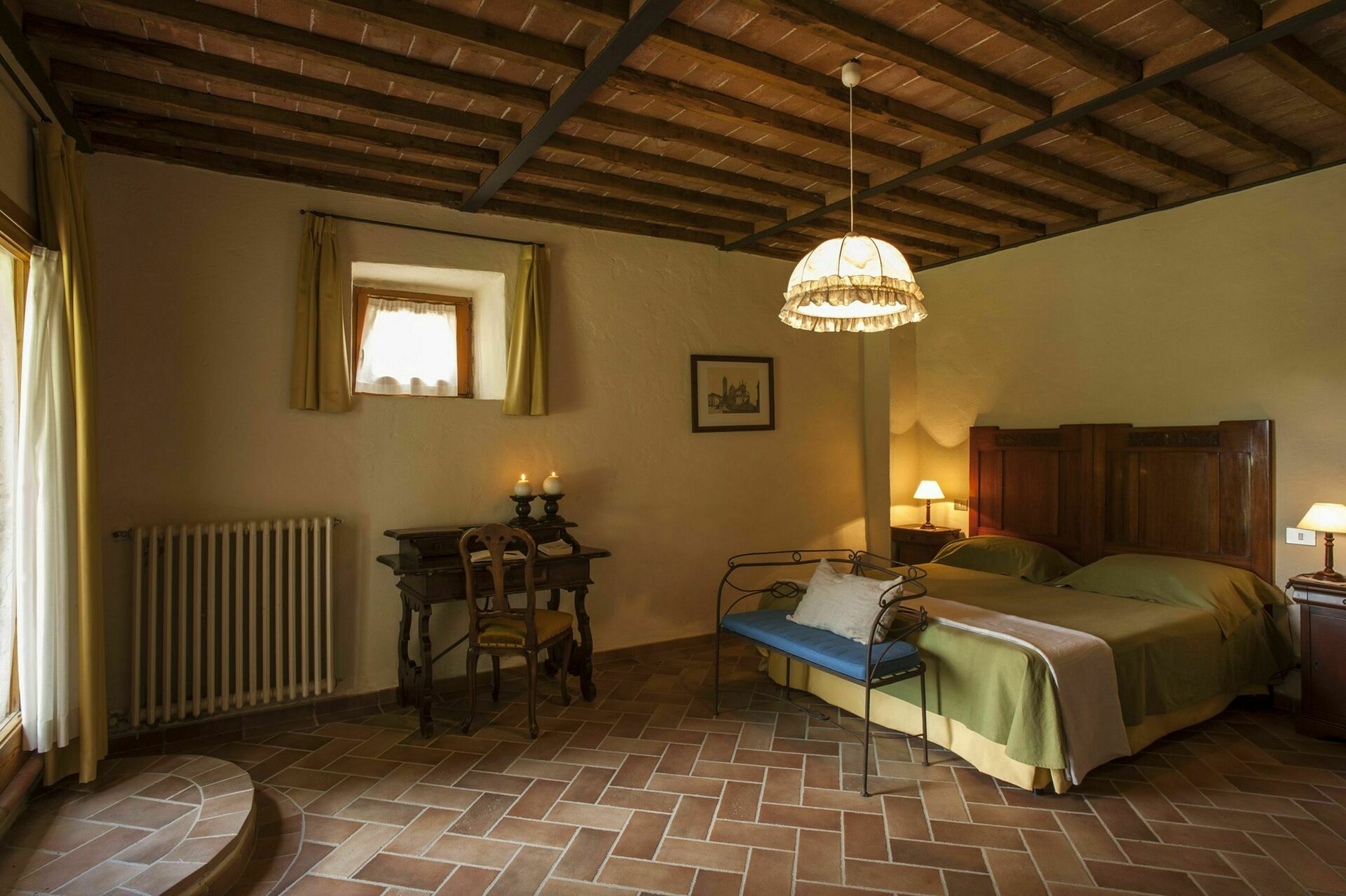 Chic and elegant, in the most picturesque surroundings, the incredible charming stone Tuscan villa and buildings of Fattoria di Quercia al Poggio make for the perfect place to have a dreamy destination wedding in Tuscany. Comprised of ten different apartments that can accommodate up to 42 people with 22 bedrooms and 17 bathrooms the property boasts two private swimming pools, stylish and cosy interiors, and extensive grounds with lots of amenities. Tucked away, far from the main road, this little slice of paradise is nestled in an elevated position overlooking the rolling hills and pastoral Tuscan landscape that surrounds. Located 15 km (9 mi) from Barberino Val D'elsa and only 24 km (15 mi) from the famously pretty medieval town of San Gimignano and both near Siena and near Florence too, this is an utterly idyllic spot in the Tuscan countryside made even more lovely by the fact that the property is on a working farm producing delicious olive oil and wines and that the vineyard, forest, olive grove, and considerable grounds can all be freely explored and enjoyed by guests.