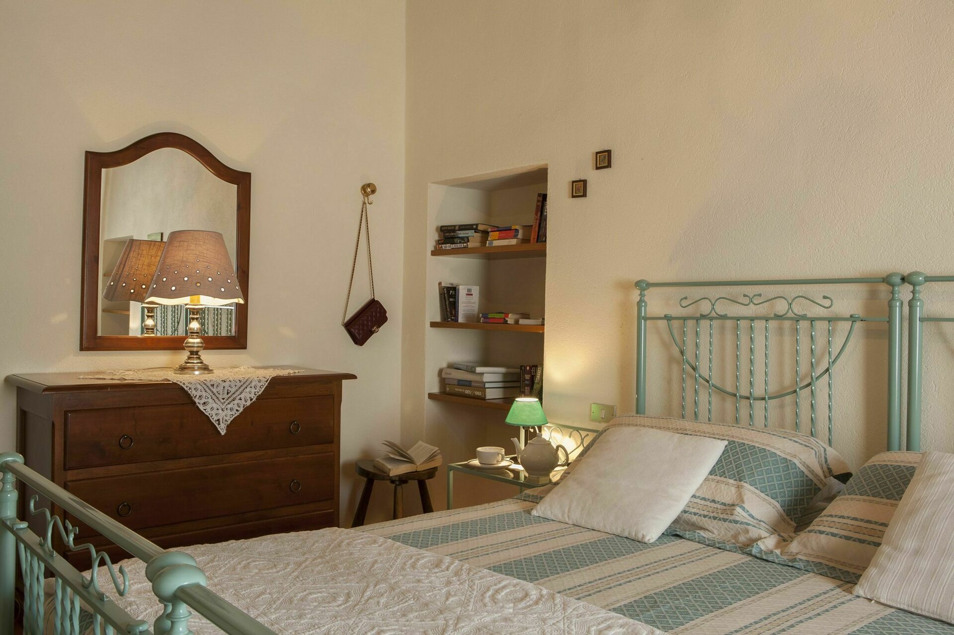 Bedroom: double bed, single bed, exit to the garden.