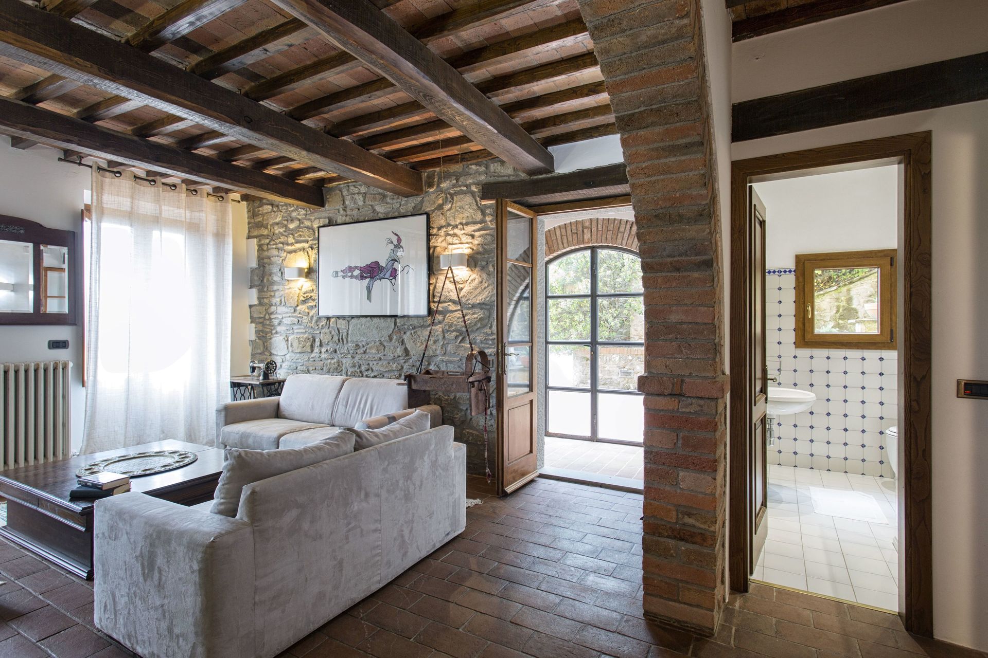 Living room: sofa (people: 4), fireplace, sofa bed double, air conditioning, exit to the terrace.