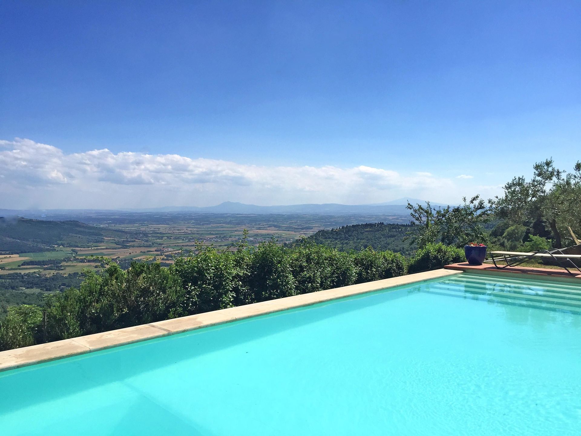 After arriving at Villa Del Sole you’ll find a lovely clean well-maintained property with views of the hills and the mountains perfect for a splendid holiday in Tuscany. For your pleasure you will find a pool where you can unwind while enjoying a nice cold beverage after a hectic day of visiting museums. If you enjoy cooking for family and friends there is a well-equipped kitchen including coffee machine, microwave, toaster, stove and refrigerator, as well as, plenty of tableware and cutlery for up to ten people. If you prefer to dine 'al fresco', there is a fully furnished terrace where you can enjoy the weather while dining outdoors.