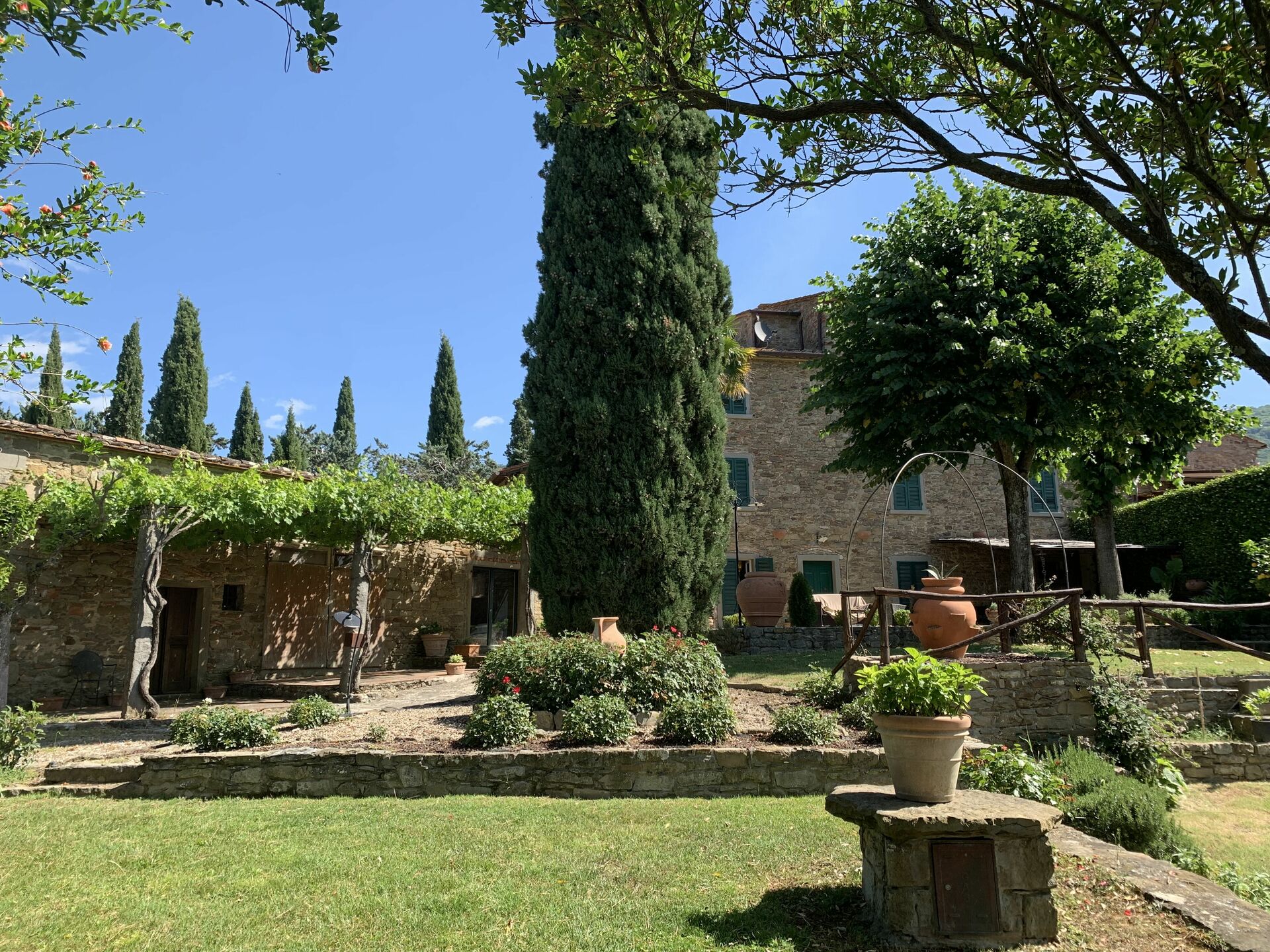 Conveniently located 3 km (2 mi) from Pergo, Italy and only 8 km (5 mi) from Cortona. Villa Il Borgo is a beautiful stone building (240 sq m) with air conditioning, WiFi internet and private pool. The property can accommodate up to eight guests comfortably in four bedrooms with four bathrooms.