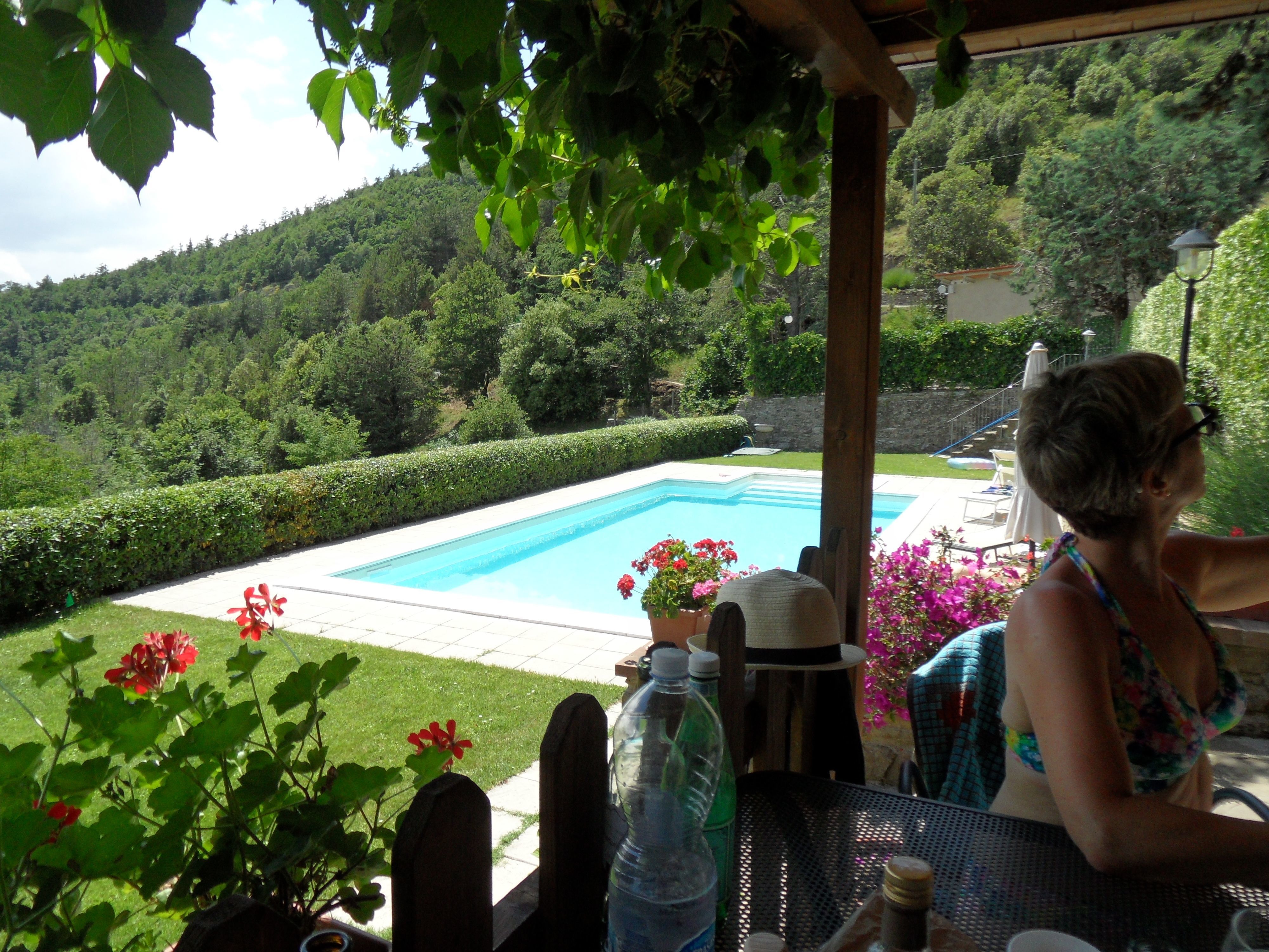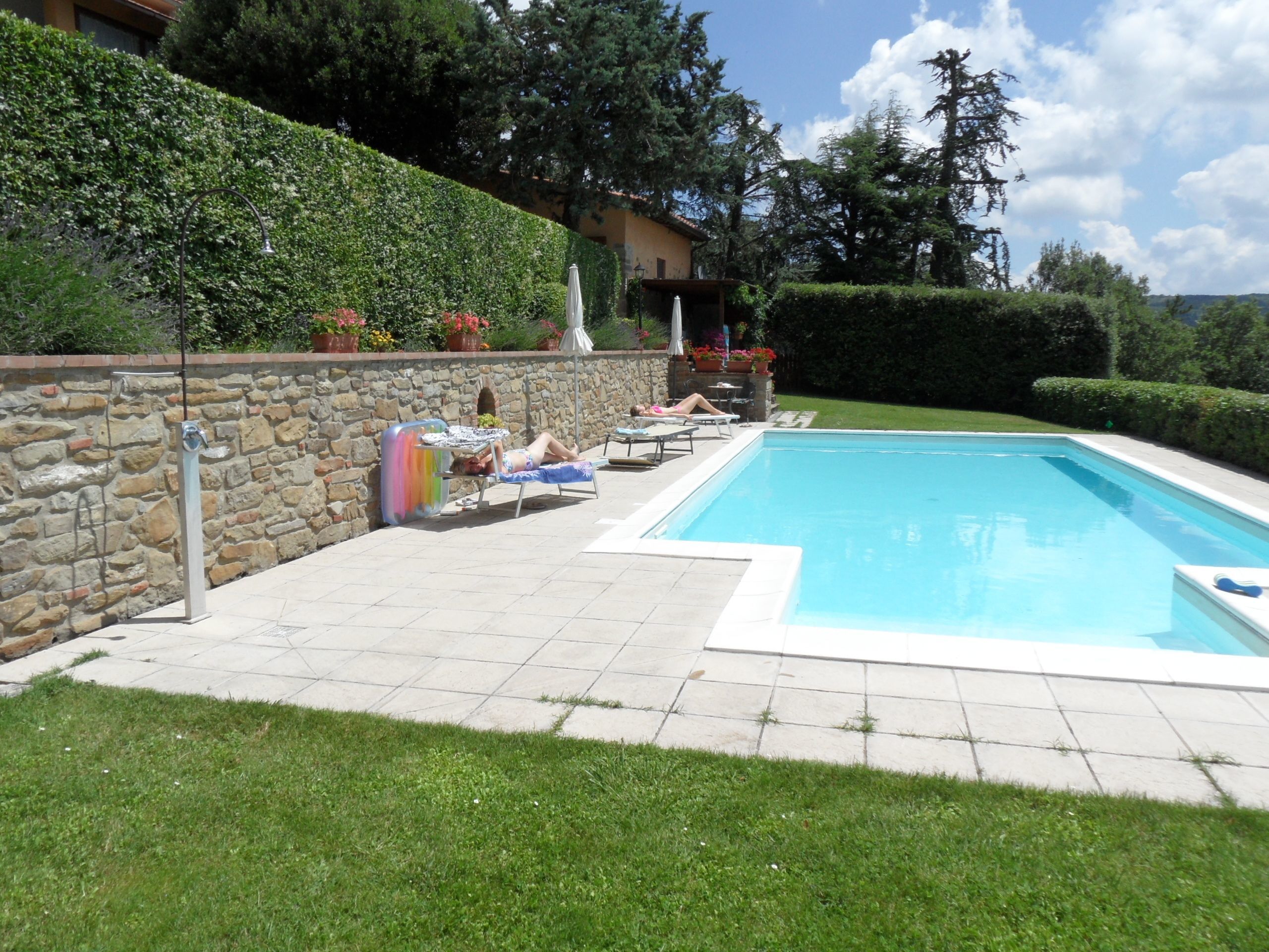 After arriving at Casa Cristina you’ll find a beautiful clean well-maintained property with views of the hills and the mountains perfect for a relaxing holiday in Tuscany. Regardless of how you spend your days - sightseeing, shopping, visiting museums or just driving in the countryside, when you arrive home you can relax with your family and friends at the pool for a perfect ending to another day in Tuscany. If you enjoy cooking for family and friends there is a well-equipped kitchen including coffee machine, microwave, toaster, stove and refrigerator, as well as, plenty of tableware and cutlery for up to four people. If you prefer to dine 'al fresco', there is a fully furnished terrace where you can enjoy the weather while dining outdoors.