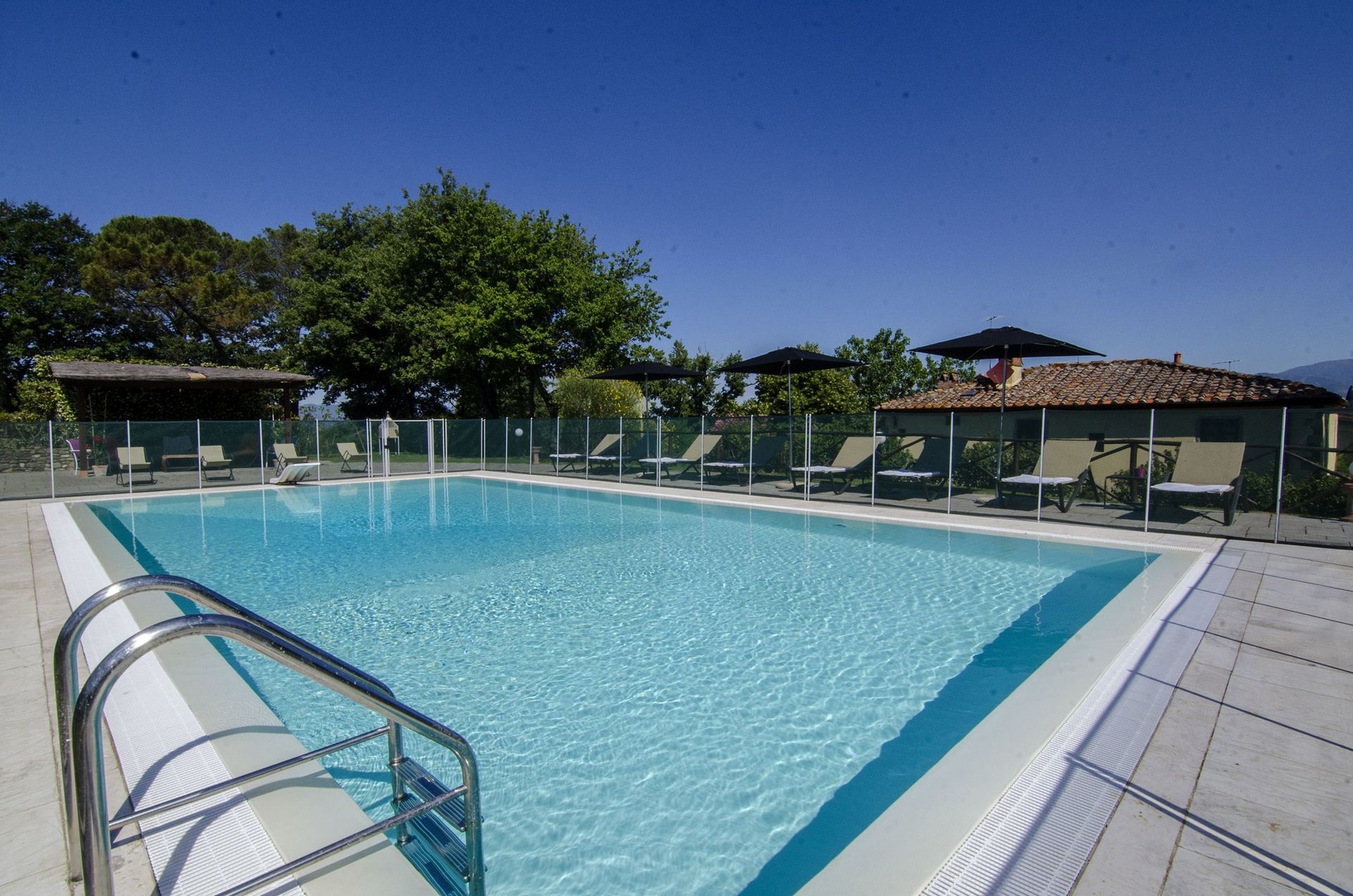 Upon arrival at Villa Del Monte you’ll find a nice clean well-maintained property with views of the hills ideal for a peaceful holiday in Tuscany. For your pleasure you will find a private pool where you can relax while enjoying a nice cold beverage after a hectic day of shopping. For your pleasure, on the grounds there is a playground and barbecue grill. Sharing a meal with friends and family is a huge part of the Tuscan culture. Take advantage of the well-equipped kitchen to prepare meals using local produce while on your holiday. The kitchen includes coffee machine, microwave, toaster and refrigerator, as well as, plenty of tableware and cutlery for up to 12 people. Dine 'al fresco' like a real Tuscan, the fully furnished garden is the perfect setting to enjoy food, family and the nice Tuscan weather.