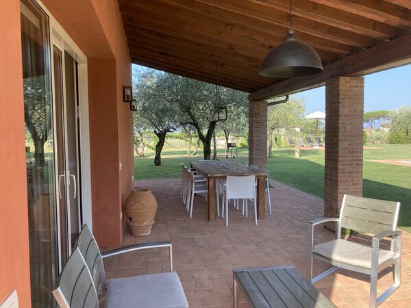 When you arrive you’ll find a beautiful clean well-maintained property with views of the hills perfect for a splendid holiday in Tuscany. After a busy day of sightseeing, spend some time with friends and family poolside enjoying a glass of wine - a perfect way to unwind at the end the day. If you enjoy cooking for family and friends there is a well-equipped kitchen including coffee machine, microwave, toaster, stove and refrigerator, as well as, plenty of tableware and cutlery for up to nine people. If you prefer to dine 'al fresco', there is a fully furnished veranda where you can enjoy the weather while dining outdoors.