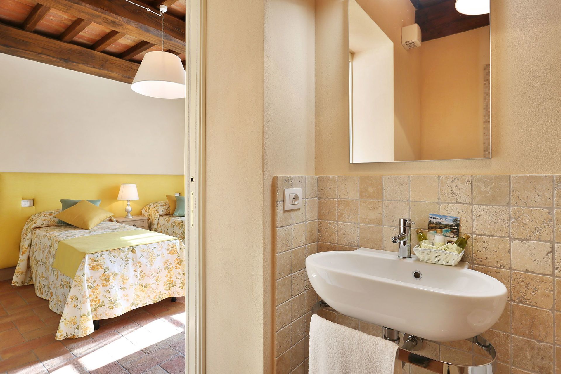 Bedroom + Ensuite Bathroom 3: two single beds, WIFI internet, air conditioning, basin, toilet, bidet, shower, hairdryer.