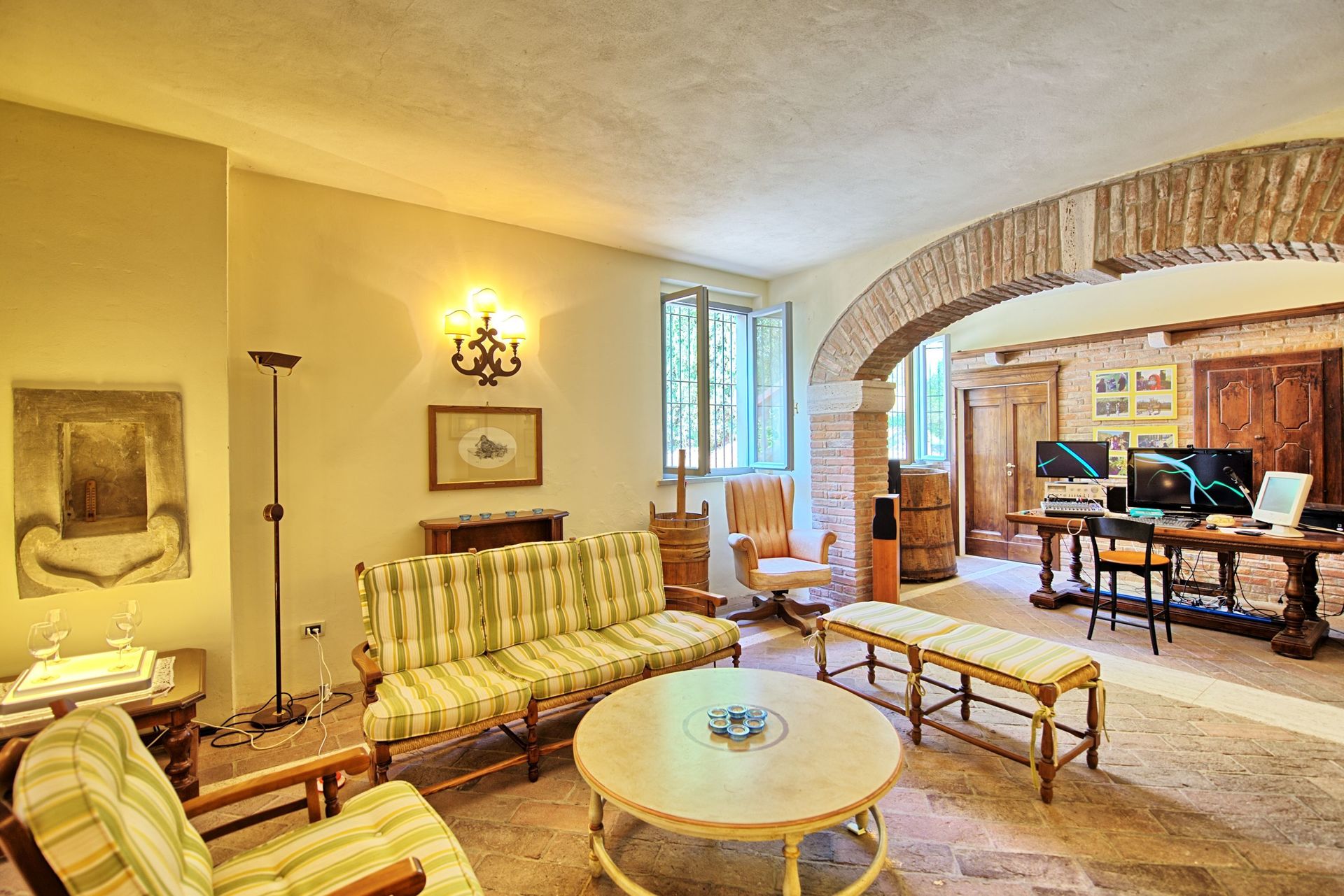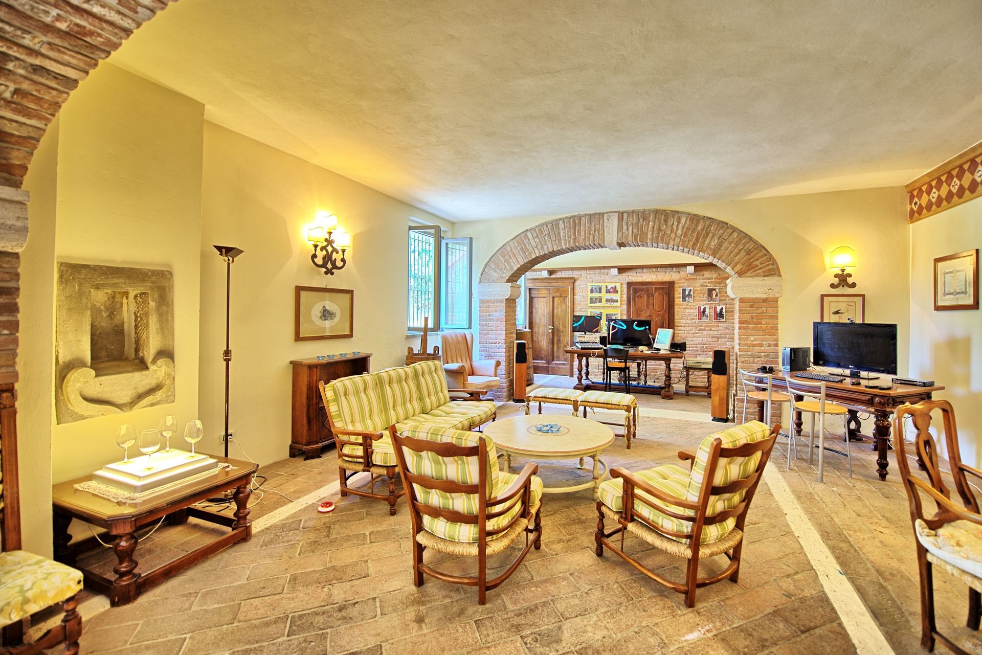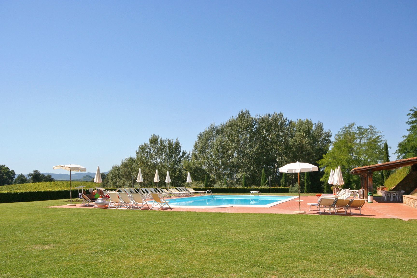 80 m2. Ground floor: living-room with kitchen corner (oven), dining area and fireplace. 1st floor: 2 double bedrooms, bathroom with tub, small bedroom with baby bed (to be required at the time a booking is confirmed - payment on the spot).