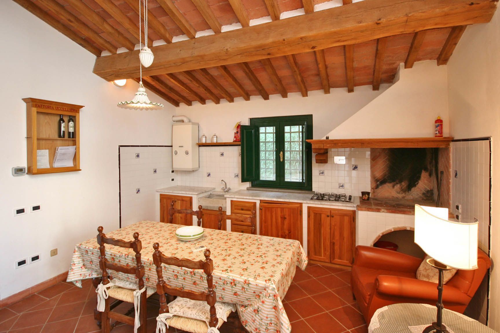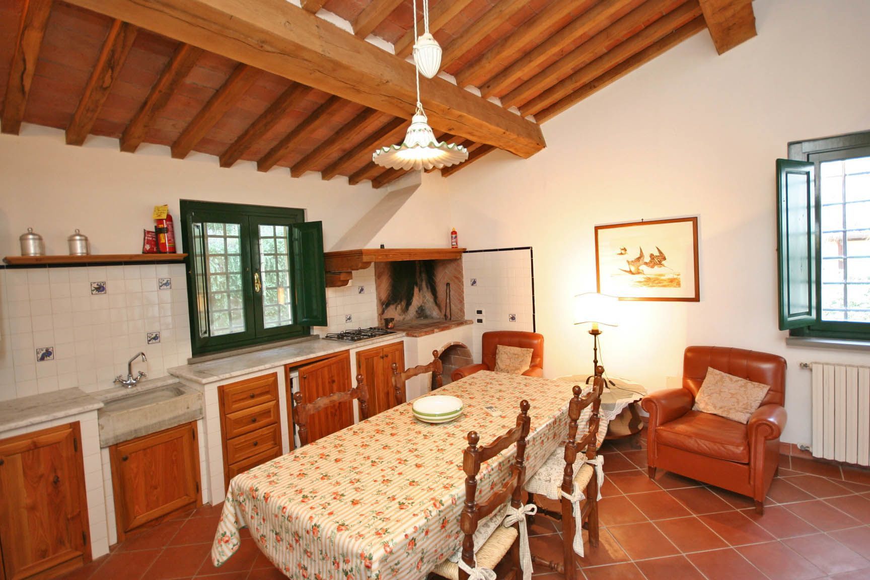 50 m2. Ground floor: living-room (air-conditioning) with dining area, kitchen with fireplace, open gallery with single bed, double bedroom, bathroom with shower.