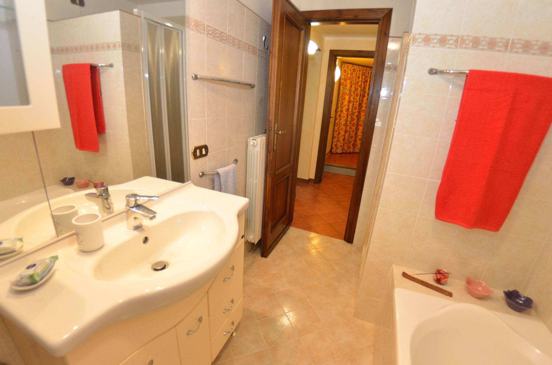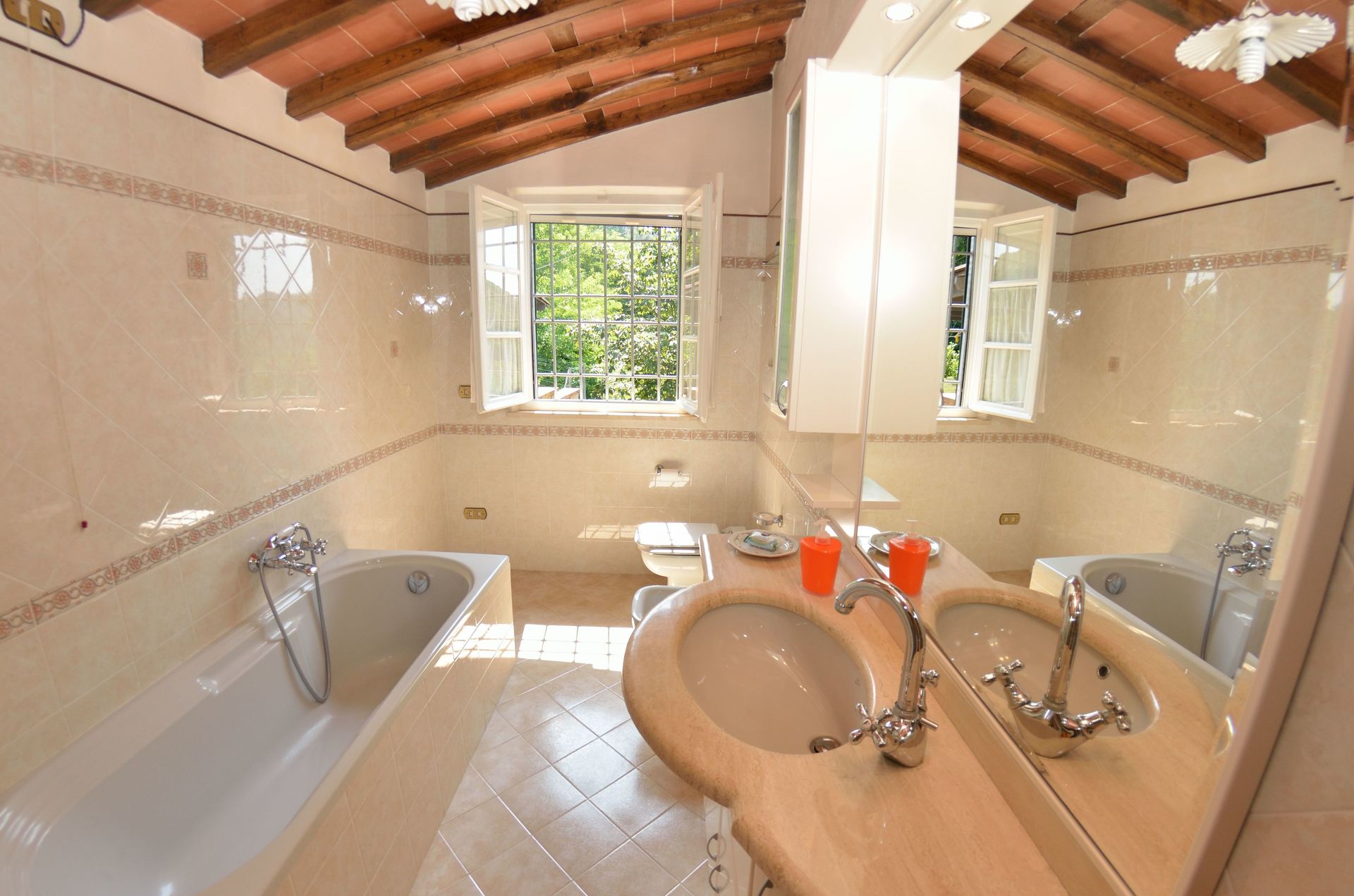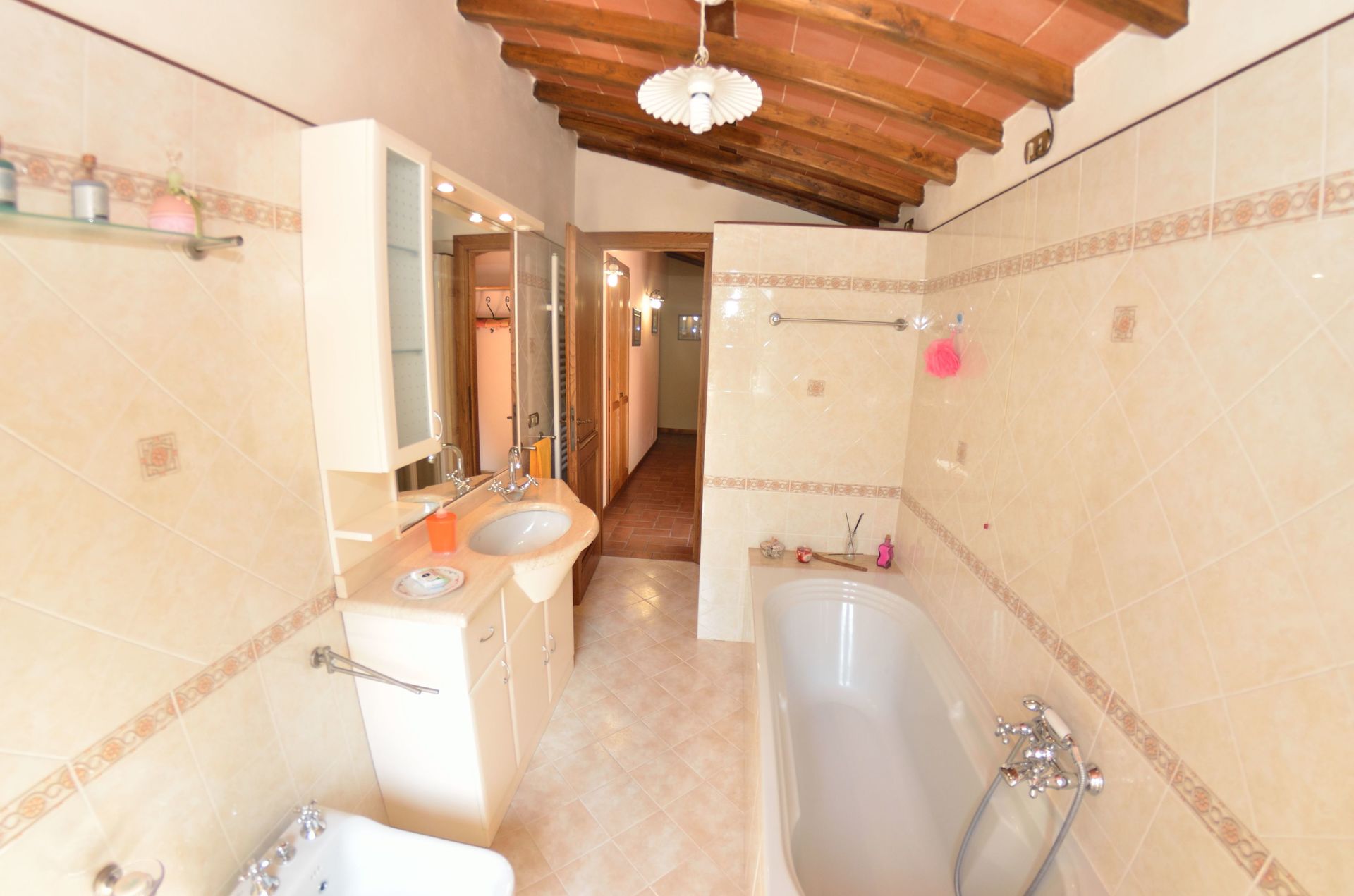 Bathroom: basin, toilet, bidet, bathtub, shower.