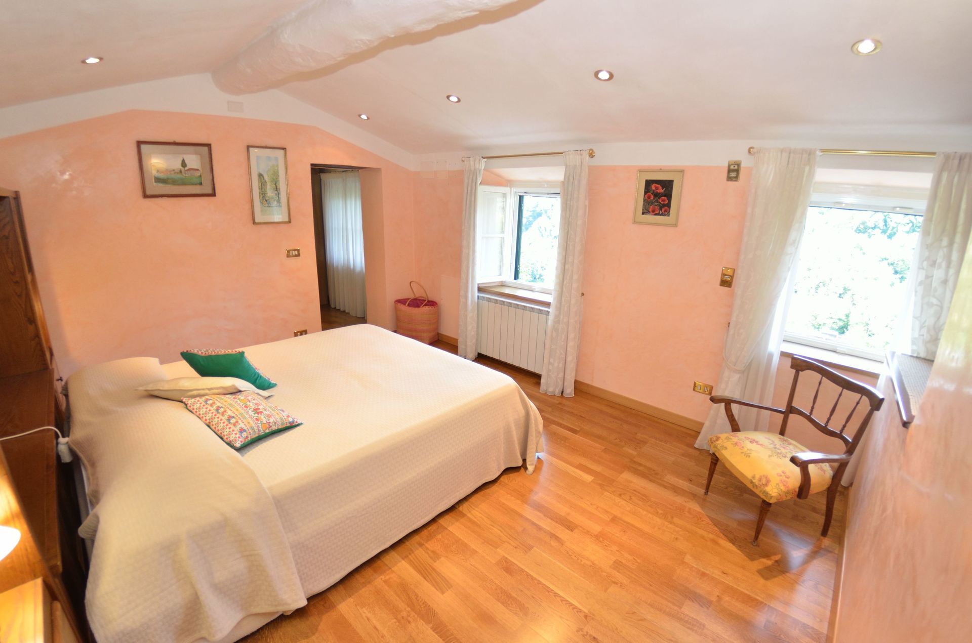 Bedroom 1: double bed, armchair, fireplace.