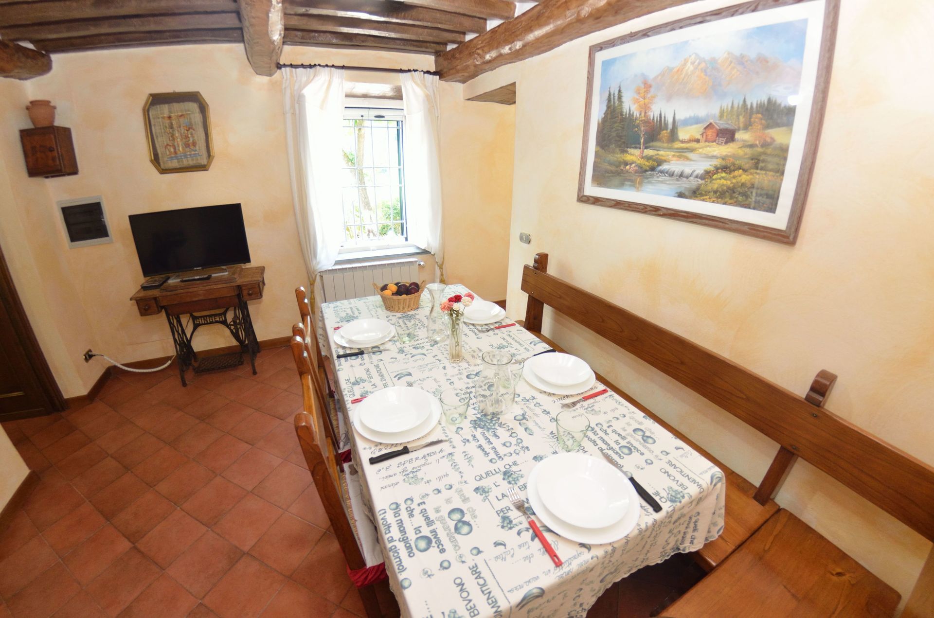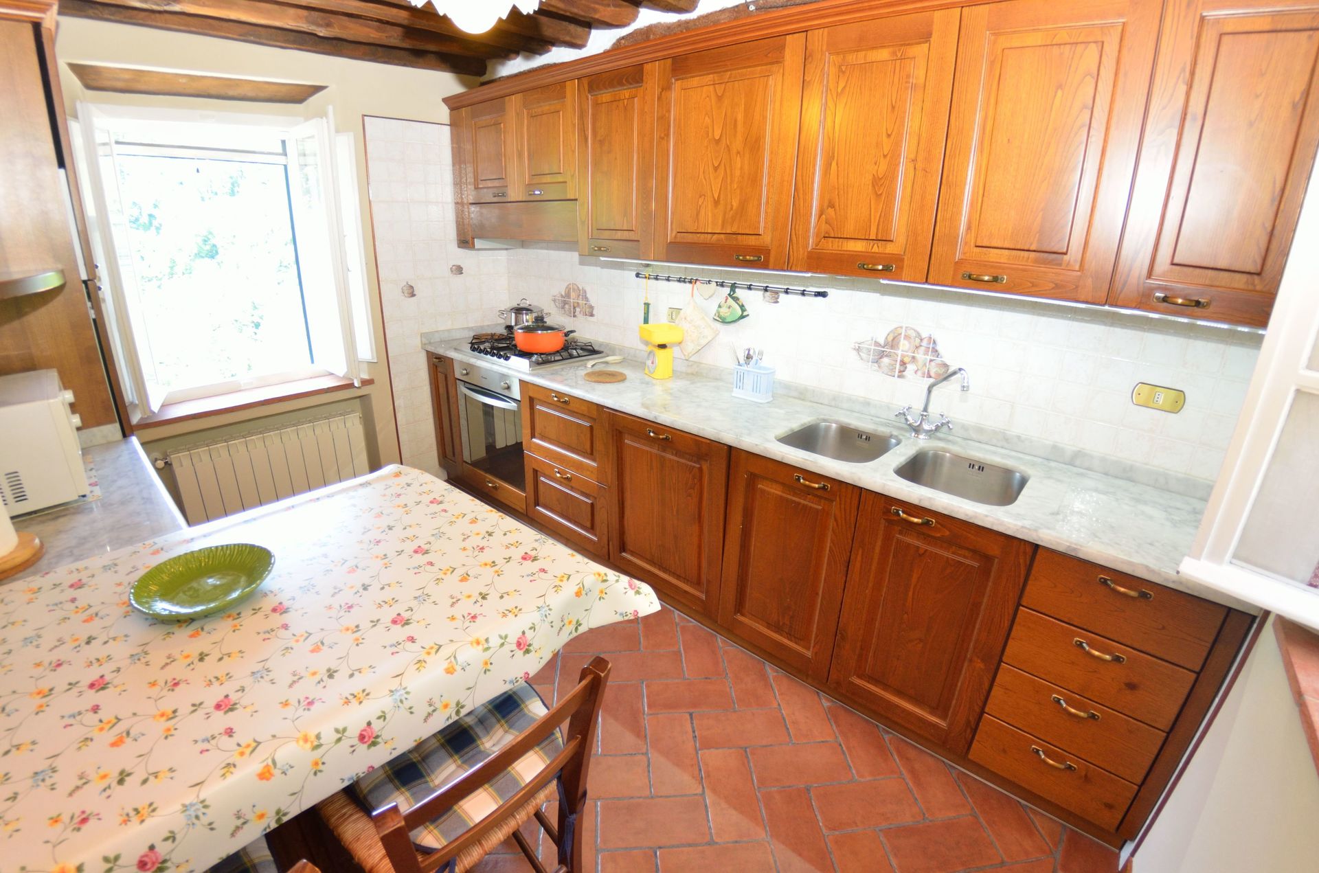 Upon arrival you will be welcomed by the owner or manager where you’ll find a lovely clean well-maintained property with views of the hills ideal for a relaxing holiday in Tuscany. Regardless of how you spend your days - visiting museums, sightseeing, shopping or just driving in the countryside, when you arrive home you can relax with your family and friends at the pool for a perfect ending to another day in Tuscany. There is a kitchen including coffee machine, microwave, toaster, stove and refrigerator, as well as, plenty of tableware and cutlery for up to nine people. If you prefer to dine 'al fresco', there is a fully furnished veranda where you can enjoy the weather while dining outdoors.