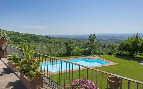 The Leonardo da Vinci holiday farm is a beautiful vacation rental located on a hill just a few kilometers away from the center of Vinci. This large working farm has 3 apartments and a small independent house, while the owners live in a separate building. The panoramic terrace that overlooks the swimming pool is the perfect spot for an open-air meal in the countryside.