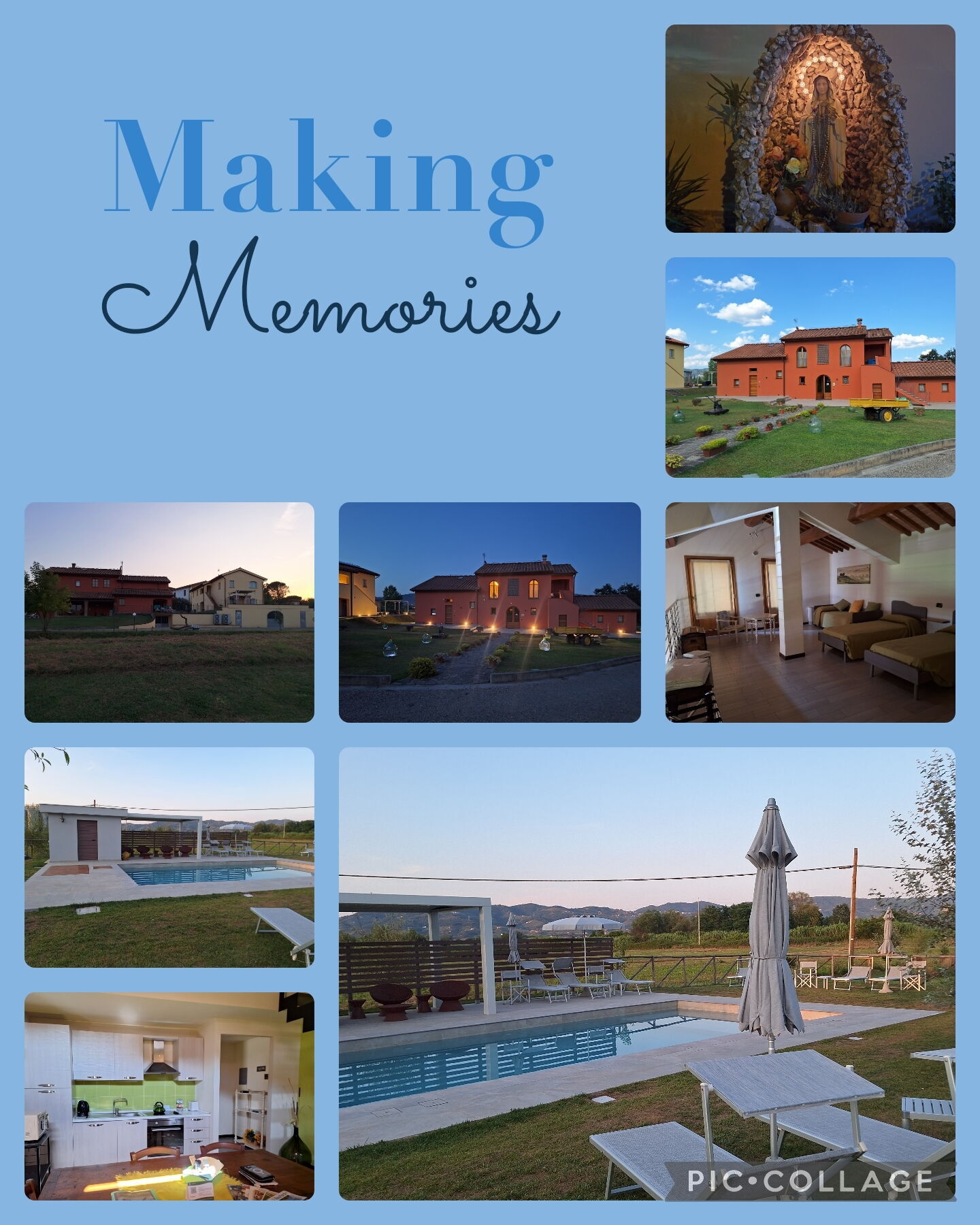 Abbiamo deciso di passare il ponte dell'immacolata insieme ad altre 2 famiglie con bambini piccoli e ragazzi, in totale eravamo 6 adulti 3 ragazzi e 3 bambini, siamo arrivati il giorno dell'immacolata e siamo stati accolti da una signora molta gentile (Daniela) che ci ha permesso di entrare in anticipo dandoci la possibilità di non perdere tutta la giornata. Abbiamo occupato 3 appartamenti veramente deliziosi e arredati con cura, la struttura si trova in una zona molto comoda per far visita a diversi luoghi special,(parco Pinocchio, Lucca, Pisa ecc..), all'interno do ognuno tutte le comodità. Consiglio il soggiorno in particolare alle famiglie con bambini.
