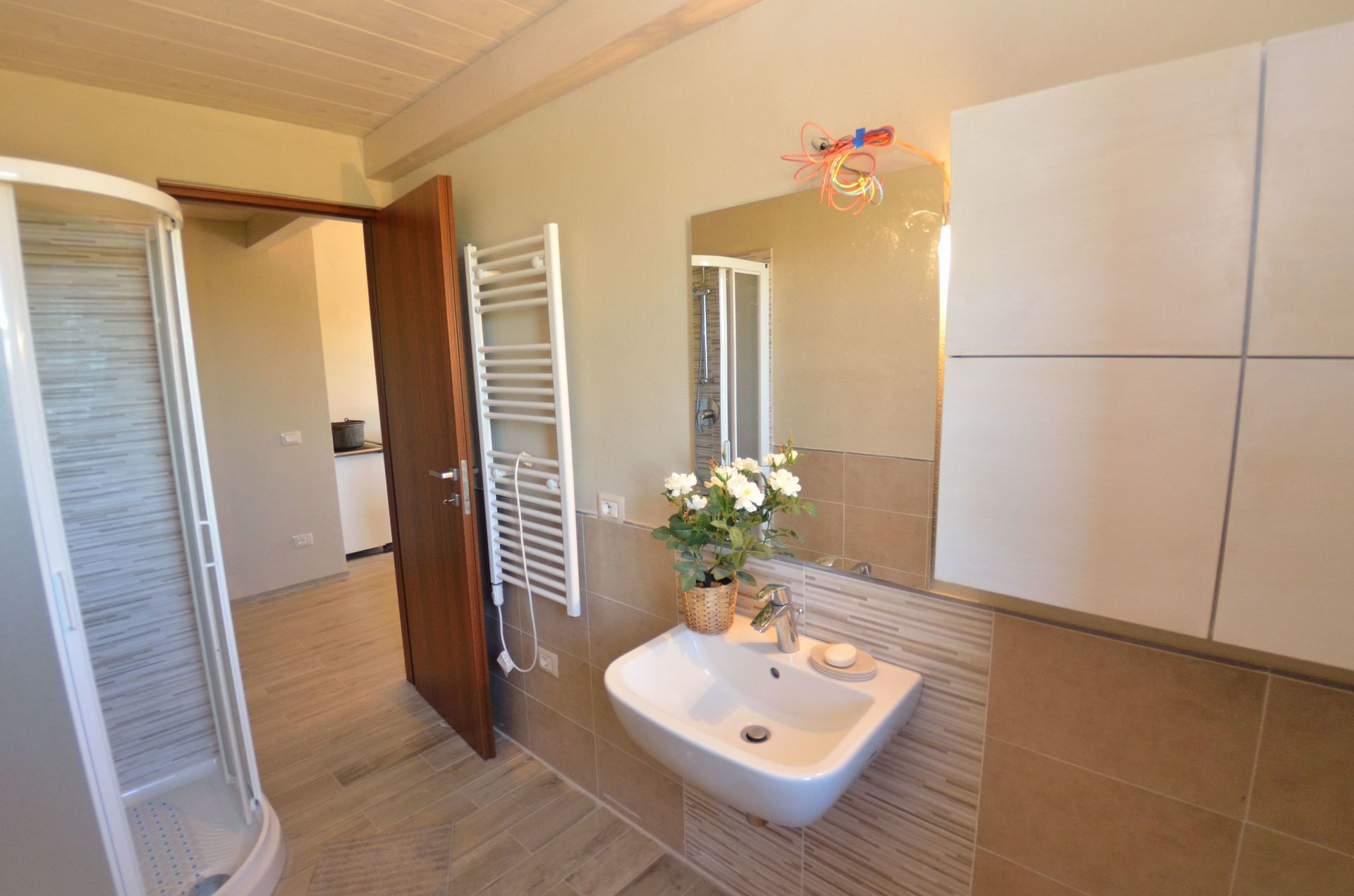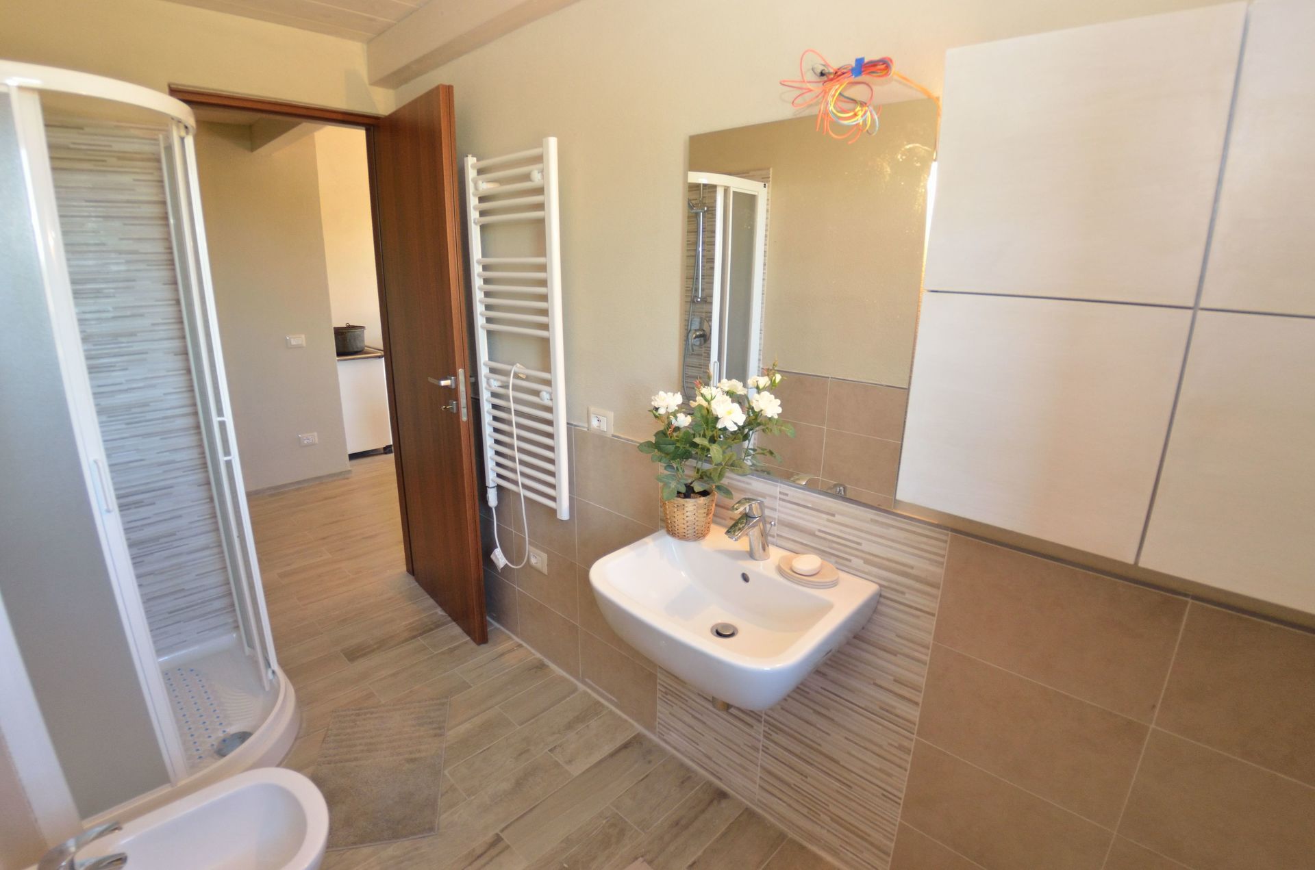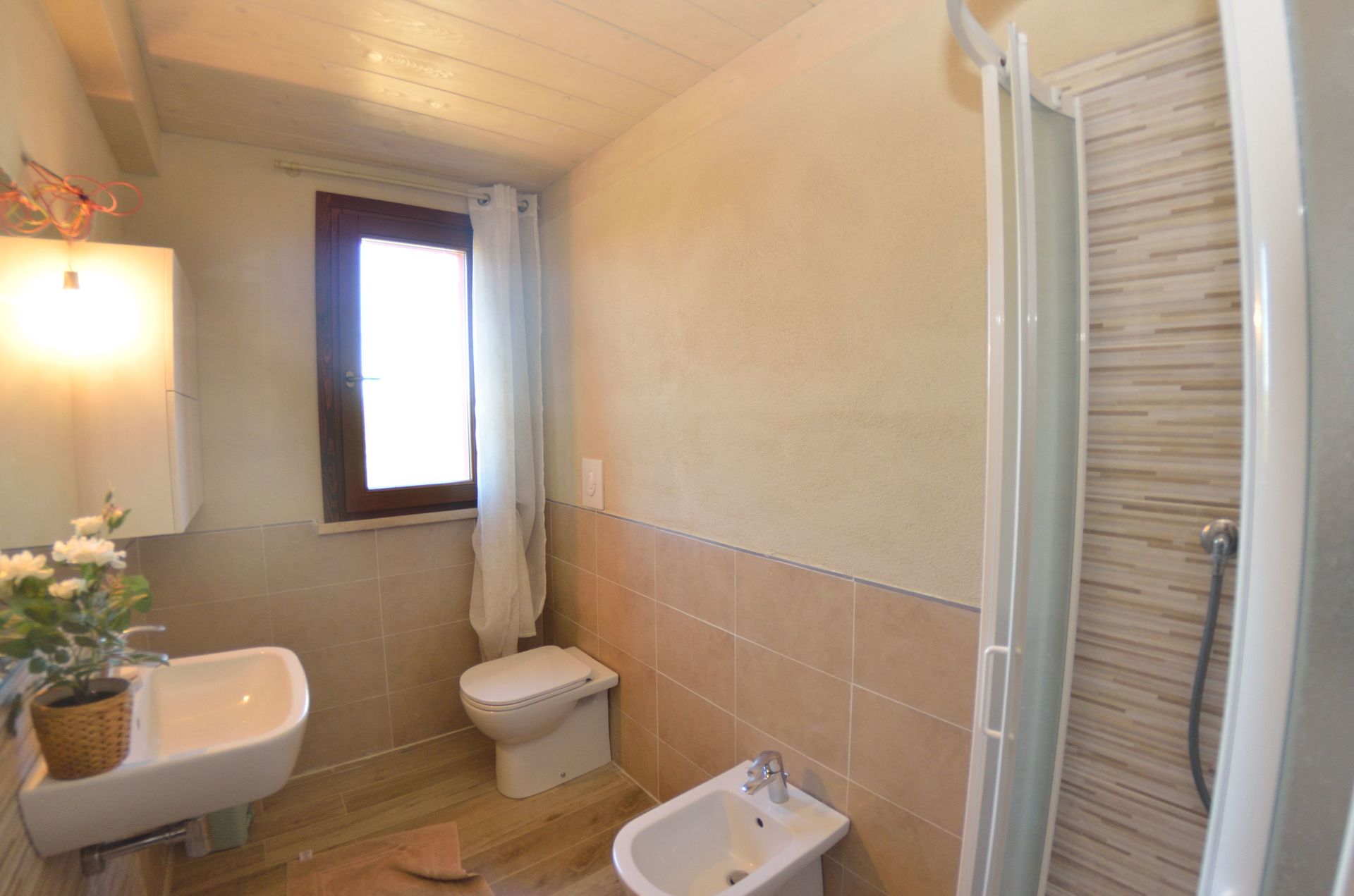 Bathroom: basin, toilet, bidet, shower.
