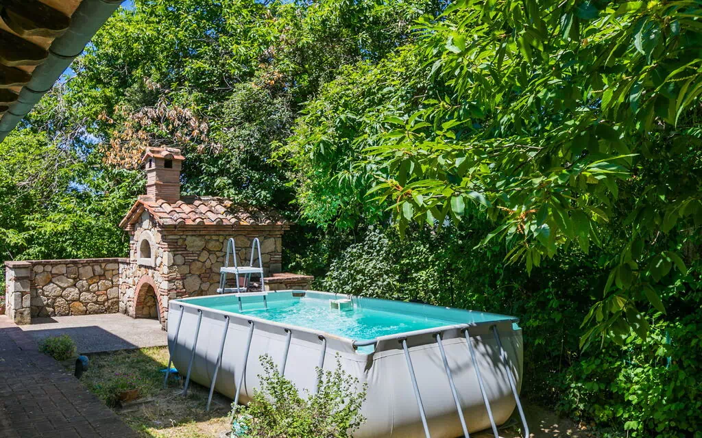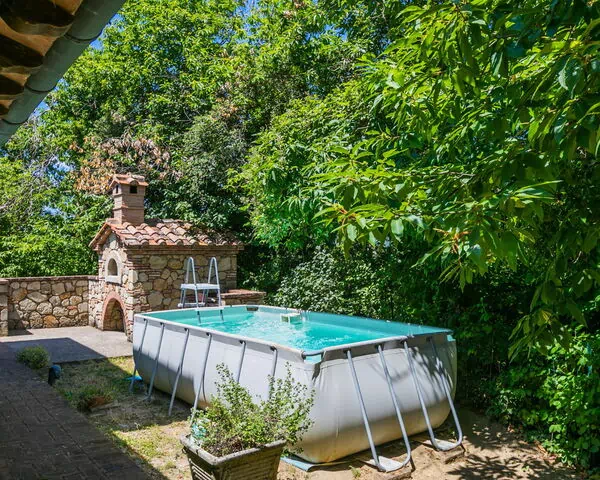Nestled within the enchanting Tenuta di Pietreto estate in Roccastrada, Italy, Casale Fonte is a charming vacation rental that offers an exceptional retreat in the heart of the Tuscan countryside. This rustic, detached farmhouse rises across 2 floors and is embraced by magnificent chestnut and holm oak trees, with a panoramic position at approximately 460 meters above sea level that affords breathtaking views over the surrounding landscape. Perched atop a sun-drenched hill, the property is enveloped by lush meadows and open fields, creating a wonderfully tranquil and secluded atmosphere. Guests benefit from a large fenced yard complete with mature trees and a meadow, as well as an above-ground swimming pool available seasonally from May 15th to September 30th. Reliable internet Wi-Fi keeps you connected throughout your stay, and convenient on-site parking is available directly at the property, accessed via a 200-meter unmade road.