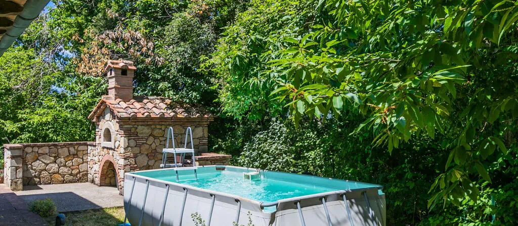 The outdoor spaces at Casale Fonte are designed to invite relaxation and enjoyment in a natural, unspoiled setting. The expansive fenced garden features a variety of trees and a sweeping meadow, offering ample room to unwind and explore. The above-ground swimming pool, measuring 2 x 5 meters, is available from May 15th to September 30th, providing a refreshing retreat during the warmer months. A generous selection of garden furniture is thoughtfully arranged throughout the outdoor areas, creating comfortable spaces for sunbathing and socialising. A barbecue is available for alfresco dining, allowing you to savour meals in the open air while taking in the panoramic countryside views. For those seeking active leisure, a table tennis table is also on hand to provide additional entertainment throughout your stay.