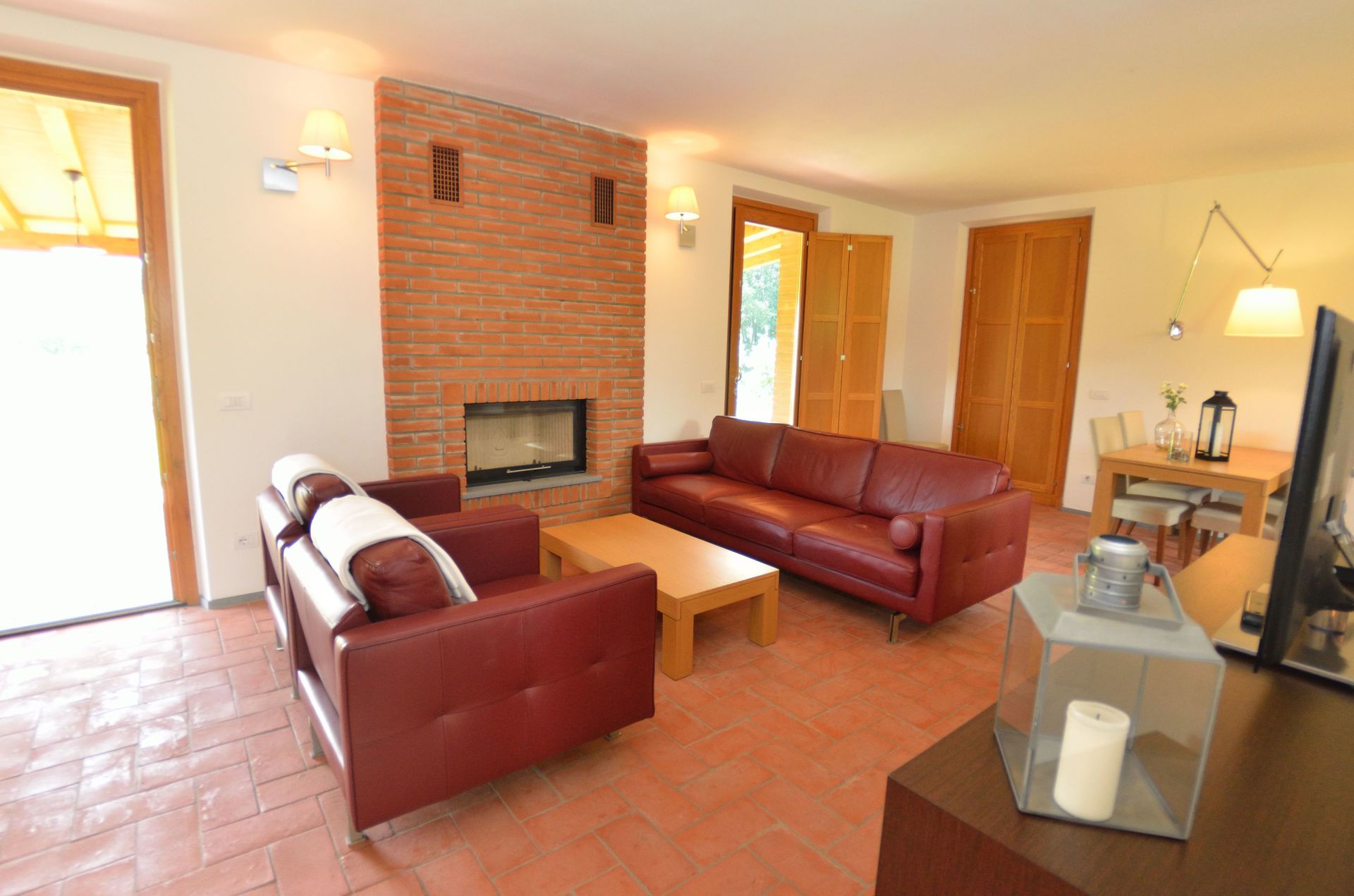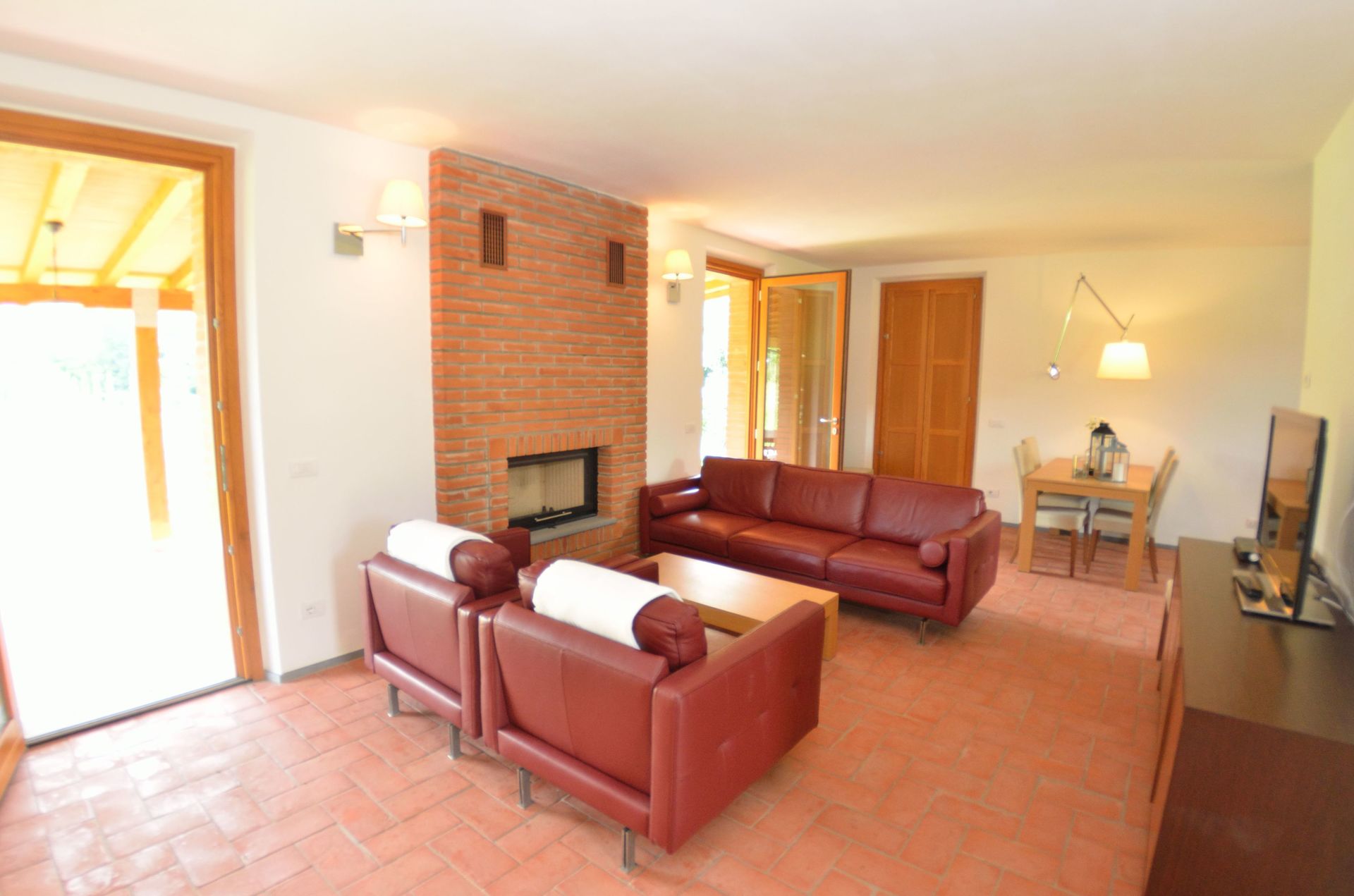 After arriving you will be welcomed by the owner or manager where you’ll find a nice clean well-maintained property with views of the hills perfect for a splendid vacation in Tuscany. After a hectic day of sightseeing, spend some time with friends and family poolside enjoying a glass of wine - a perfect way to relax at the end the day. Also available outdoors are a patio and barbecue grill. There is a kitchen including coffee machine, microwave, toaster, stove and refrigerator, as well as, plenty of tableware and cutlery for up to five people. If you prefer to dine 'al fresco', there is a fully furnished veranda where you can enjoy the weather while dining outdoors.