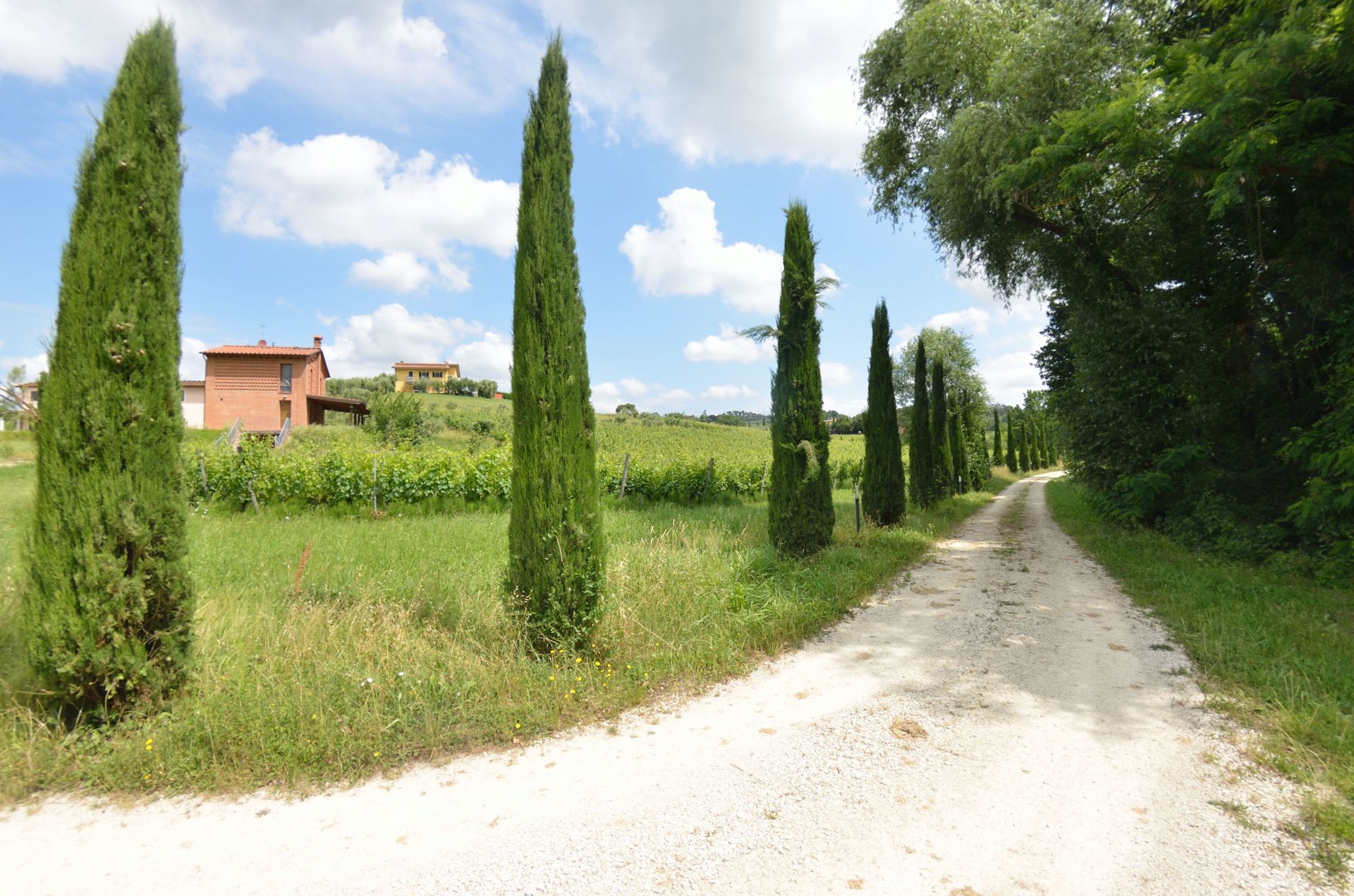 grosses Haus in toskaner Styl zwischen Olivenbäumen und Weinreben